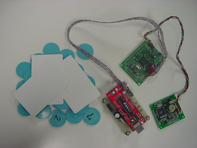 そして翌年度に入って、 ゴールデンウイーク 中にも、また1セット、RFIDのシステムを作っていたようである。 金子冴子さんの「総合演習II」の作品「空からの贈り物」は、和田先生に渡したこのRFIDシステム一式が使われているものの、僕は制作についてはノータッチだったので、資料としては SUACインスタレーション(3) のページのプレゼン(解説)などを参照されたい。 記録としては 総合演習II最終合評 だけである。