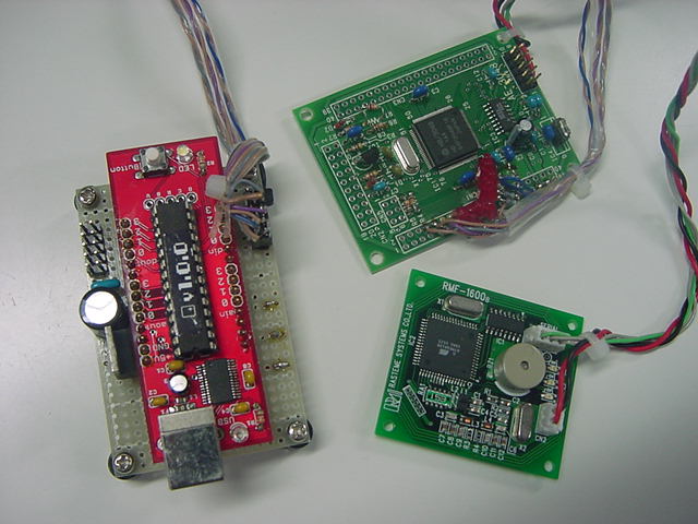 RFIDを使ったいちばん最初の作品は大塚理絵さんの「白い絵本」なので、MAF2008で発表ということから2008年の4月から発掘したところ、どうやらスタートラインは上の写真がいちばん下に出てきた、2008年5月18日の このページ らしい。 ところがここではRFIDリーダを直接RS232CからUSBに繋いで実験していて、その後に汎用システムとなった、「RFIDリーダ〜AKI-H8〜Gainer」というシステム(これは後に和田先生にも1セット作って提供した筈)を作っている記録が見当たらなかった。 なんせこの年には、 Propeller日記(5) の最後にちょっと書いてあるように、あるいは Arduino日記 の後半をびっしり埋めているように、院生の鈴木絢さんの修了制作に繋がる 「ステッピングモーター100個」駆動システム 、さらに 電子十二影坊 (Dodeca Propeller) まで、同時進行で並行して進めていたのだった。 鈴木絢さんのその後の頑張りは ここ にあった。(^_^;)