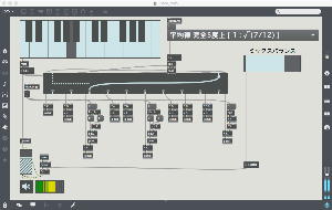 上のパッチは北澤拓弥くんの作品で、ドレミファソラシの音階のどこかをreturnキーで選択すると、その音階にまつわる「お告げ」が出てくる、というものである。 ただし「モード切り替え」ボタンがあり、音階が順に上がっていくだけでなく、ランダムに選ばれるモードの場合には、自分が希望する音階を選択するためには「音感」と「運動神経」の両方がもとめられるために難易度が大きく上がる、という面白さがある。