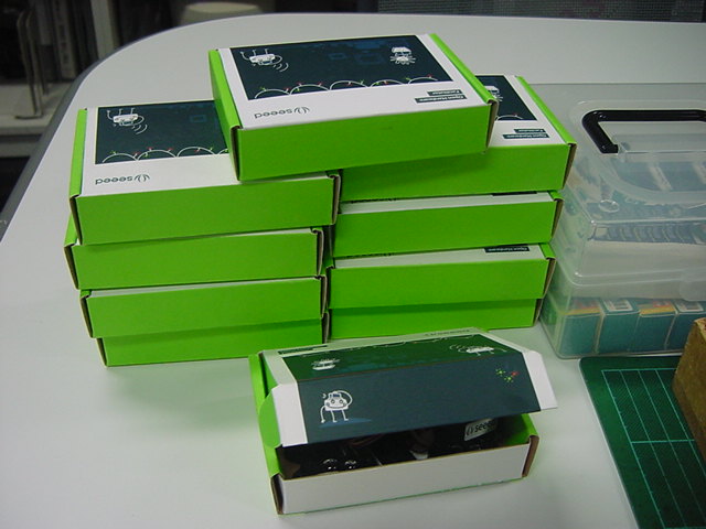 実験は1個だけとしても、SeeeduinoLiteは10枚仕入れたので、一念発起して上のように、ArduinoNanoとArduinoMicroとを入れていたケースを整理しつつ、センサと繋ぐシリアル増設コネクタを1個だけハンダ付けした。 そして以下のようなサンプルスケッチをそのままコンパイル・アップロードした。