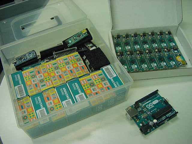 そこでデータシートを読んでいると、さすがにSeeed社もここは考えているようで、「UARTを2個、持っている[Arduino Mega]であれば使える」とのことだったが、[Arduino Mega]は大きな基板で美しくない上に無駄に高価だった。 そしてSeeed社はそんなユーザのために、上のような「UARTを2個持っていて、Arduino Megaと互換」という Seeeduino Lite を提供しているのだった。 そこでSUAC出入り業社を通じて、追加の 距離センサ とこの Seeeduino Lite とを発注した。 特急便でなくいずれも最低価格の「郵送」としたので、届くのは1カ月後ぐらいであり、これは届いたら実験を開始する、という感じである。 持田さんは的場先生の指導で、よくある超音波センサを使うようだが、「テンキーの回路に接続してJavaScriptで動作」という、なかなか面倒で応用性に乏しい戦略となっている模様だ。