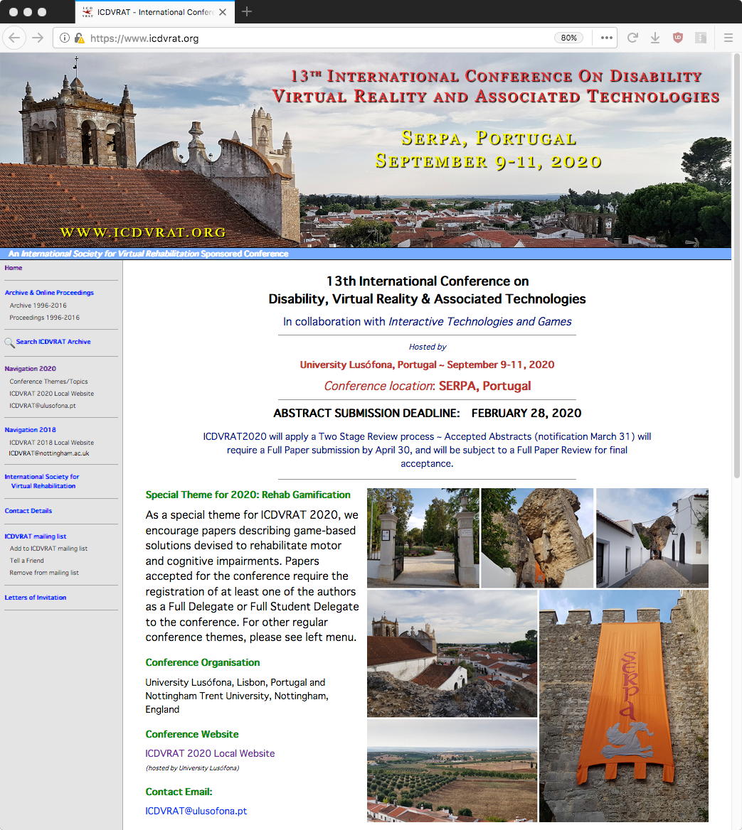 そして2020年の9月にポルトガルで開催される国際会議というのが、何故か以下のように2つのサイトがあるのだが(^_^;)、 国際会議のページ と 開催大学のページ とある、ICDVRAT2020 (13th International Conference on Disability, Virtual Reality & Associated Technologies)という国際会議である。 ここではAnthony Brooks先生は基調講演をするということで、僕もなんとか応募して発表参加してみたい。 ICEC2018のようにチュートリアルの提案も考えてみたいのである。