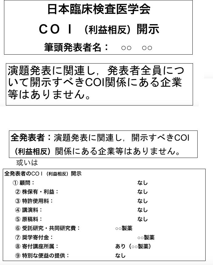 そして、ちょっと気になっていた事を調べてみた。 先週末の 日本バイオフィードバック学会学術総会(シンポジウム講演) では、ほぼ全ての発表に「COIはありません」という「但し書き」が一律に書かれていたのである。 そこでYAHOO検索で出てきた このページ から、上のようなテンプレートをゲットした。 つまりは臨床研究ではこれが「お約束」なのだろう。 今後は、これを入れるような発表に挑戦したいものである。