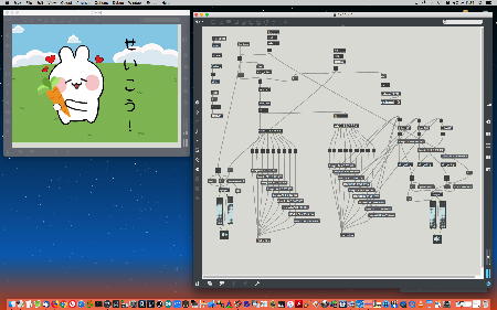 上のパッチは鳥塚洸希くんの作品で、「連続して繰り返す画像→スペースを押した瞬間に対応した画像が出る」というものであり、スピードが速いためにほぼ「占い系」となっている。 今年はこのタイプの作品で「画像を差し替えただけ」というものが頻発した。(^_^;)