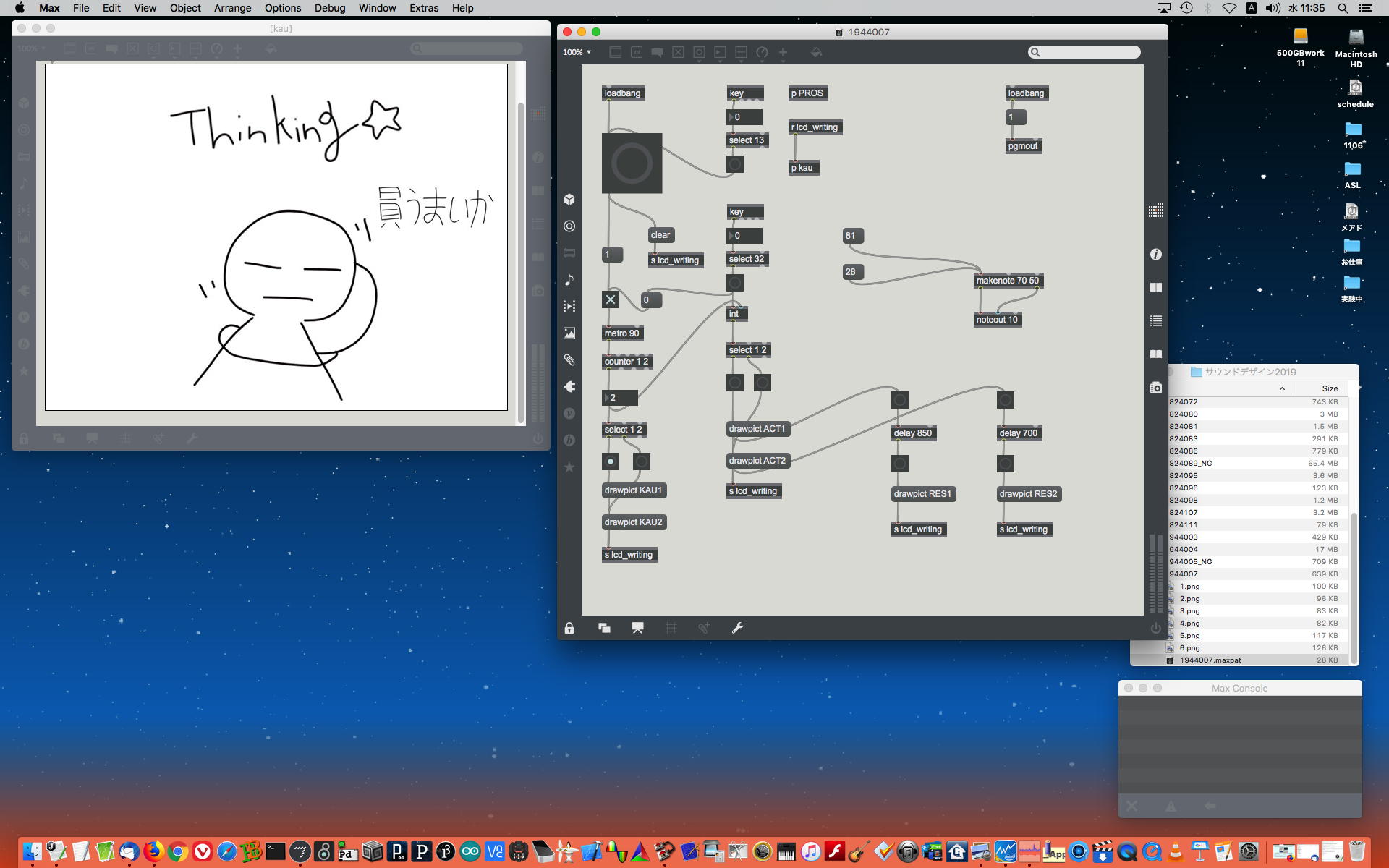 そして午前は眼科に行って白内障手術後検診で経過順調を確認してSUACに戻り、午後はゼミに加わる杉山さんの「Max補習」である。 すでに「サウンドデザイン」の中盤まで進めていて、まずまず順調なのだった。