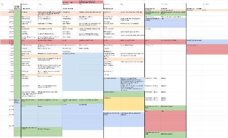 オープンキャンパス翌日の8/12にはアカペラの恵梨香ちゃん小林クン平田クンと9時間マラソン、僕はその直前に1時間ヒトカラ13曲を加えて、計41曲とまずまずの出来高だった。 昨日から3日間はSUAC事務局がお休みとなる期間だが、多くの教員はお仕事に出てきている。 後期から心機一転、僕のゼミに加わることになったもののこれまで何も僕の専門科目を履修していなかった杉山さんは、いよいよ昨日と今日を皮切りに「夏休み中にMaxをモノにしてしまう特訓補習」にやってきている。 目標は「サウンドデザイン」までであり、同様に取っていなかった(ただしこの2人は前期に「サウンドデザイン」と「音楽情報科学」を取った)ゼミの理子ちゃん那菜ちゃんと共に、2回生に混じって後期は僕の「メディア数理造形演習」と、僕も担当する「インタラクティブプロダクト演習」(楽器を作る)の両方を履修して、3人の3回生は追いかけ追い付きつつ「総合演習」で自分のテーマの作品制作に向かうことになる。 そして、残っていた「サウンドデザイン」課題として学生が制作したMaxパッチ作品の整理紹介に着手した。