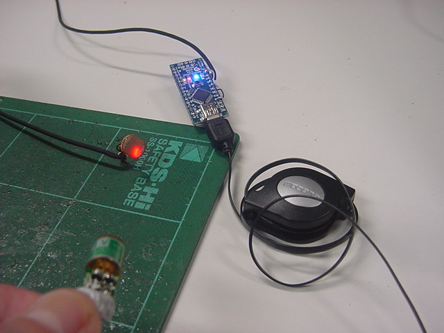 - →USBコネクタ横の橙色のLEDがじわーっと明滅して「upload待機状態」になるのを確認