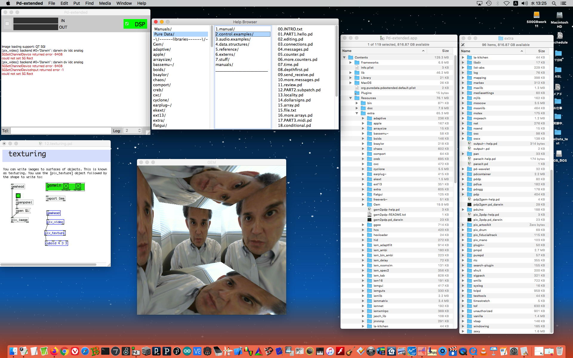 そして上のように、PureDataで3次元空間内の立方体の内面にライブ画像をテスクチャマッピングして、その立方体をマウスでぐりぐり回す・・・というところまで出来てしまった。 このデータを持参MacBookAirに入れて、あとは道々、暇があったら進めていくことにした。 新学期を前に、続々と大学からの連絡も届いて忙しい出張になりそうである。