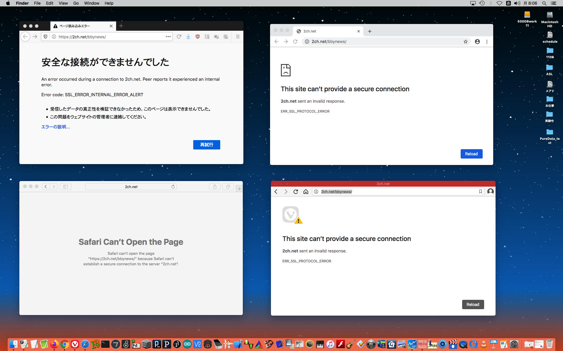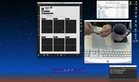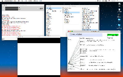 そして、さらにあれこれ、まさに文字通り「試行錯誤」を繰り返してみた。 行ったのは、「シリアルポートの奪い合い(^_^;)」であり、Processingスケッチと、ArduinoIDEシリアルモニタと、Max8パッチとで、同じたった一つのArduinoNano33BLEを「同時に指定する」という、本来であればエラーで認められないことである。 そして当然ながら、例えば「ArduinoIDEシリアルモニタがArduinoNano33BLEを掴んでいる時に同じポート指定でProcessingスケッチを起動させようとするとエラーで断られる」・「ProcessingスケッチがArduinoNano33BLEを掴んでいる時に同じポート指定でArduinoIDEシリアルモニタを起動させようとするとエラーで断られる」などの現象が続いたが、たまたまある瞬間、以下のような不思議な風景に遭遇した。