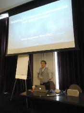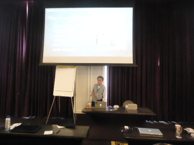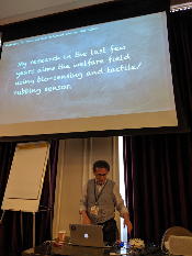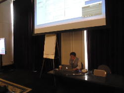 自分の発表についてはコメントを書く余裕もなかったが、なんとか酷い時差ぼけに打ち勝って、そこそこ英語も出てプレゼンを終了した。 Mikeに撮ってもらったのが以下の写真である。 ちなみにプレゼンは これ である。