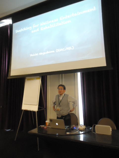 地元デトロイトの2人のプレゼンである。 都市計画のデザインの話なのか。 デトロイト美術館とかミシガン大学など、この地区には関係した建物がずらっと並んでいて、そこをスマートシティ化するためにあれこれデザインしたという報告。 幅広く意見を収集して、デザインプロセスの手法を駆使して新しい都市計画をした、ということらしい。 巨大な地下駐車場に全てクルマを収容して、地上にはクルマが無い・・・というのは美しい。 域内の教育機関や一般市民/観光客には当然ながらFree WiFiを飛ばしているという。 ・・・ただし、これはデザインまでであり、実際には「これから」? らしい。 そしてここでランチの時間となった。 身体時間(日本)は深夜の午前1時である。(^_^;)01:00 PM Yoichi Nagashima Sketching for Wellness Entertainment and Rehabilitation