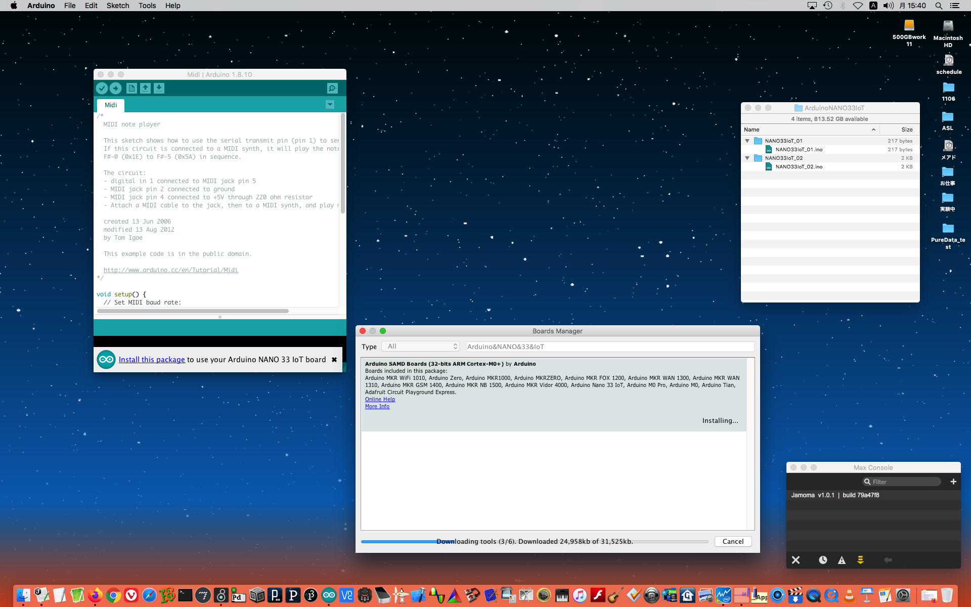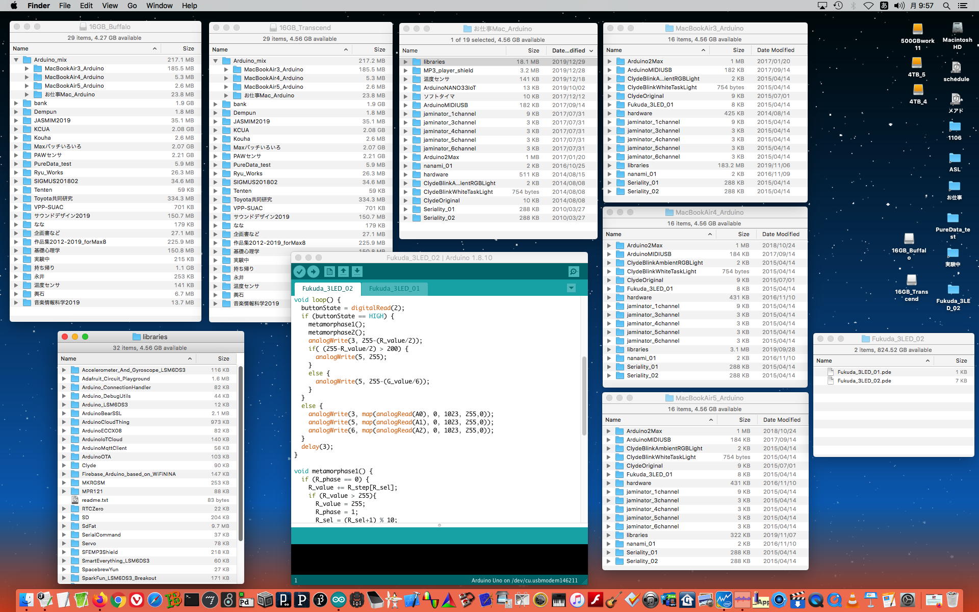 捜索開始から2日がかりになったが、これでようやく、Max環境と並んで、あれこれ混乱していたArduino環境も、研究室内で整理されて共通化できた。 さらに、なかなかの無駄足だったが(^_^;)、過去のアーカイブや既に廃棄した過去のMacからの環境についても調べてみたことで、これまでに制作したシステムに関するデータが、これでシームレスに繋がった(切れ目がなくなった)と確認できた。 これは十分な収穫であり、どたばたしたものの、まさに「Sketching人生」には付きものの苦労だったのだ。