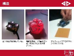 そして金曜日(1/31)の朝も痛みのためにタクシーで出てきて、まず午前にはゼミ・3回生の那菜ちゃんの「総合演習I」の追い込みで、 このように 片目でぐずぐずと残された電子工作を仕上げてArduinoスケッチまで完成し、あとは造形との合体までのステップに進んで、さらに4-5限には このように 「メディア数理造形演習」の3チームの作品の最終合評まで終えて、のんびりバスで帰宅した。