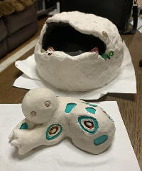 「怒涛の1日」というのはこういう日を言うのである。 朝イチで上のような1回生・輿石さんの造形の進捗を受けてから、途中で以下のような1回生・鈴木琴葉さんの進捗にも力づけられつつ、 このように 1日があっという間に過ぎ去った。 低気圧の暴風警報のために全学休講となった、というのもほとんど気にすることがないほど、充実していたのだ。 懸案の山本さんのArduinoスケッチは1分ほどで解決し、その後はゼミの3回生・理子ちゃんの2作品(インタラクティブプロダクト演習と総合演習I)の制作支援を進めて、さらに合間に4回生の卒業制作発表の準備を手伝い、さらには懸案だった、デンマークのAnthony Brooks先生に送るVPP-SUACの解説映像まで、輿石さん琴葉さんの協力で このように 撮影できてしまった。 さっそく忘れないうちに、明日の朝イチで発送してしまおう。
