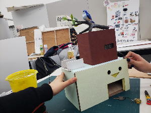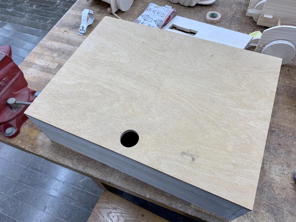今日は1-2限にゼミ3回生・田口さんのアポ、そして4-5限は大詰めの「基礎演習E」、さらに放課後には今期あと3回となったアカペラである。 アカペラには、卒業生で実習指導員の根木クンが復活してくれたので、来年度(2人のBassが卒業して男声ゼロの危機)には、僕がTenorからBassに行くことで一縷の望みが出てきたところだ。 そして朝イチで届いたのは、以下のように「インタラクティブプロダクト演習」の2回生・永井さんからの写真であり、穴開けについての質問だった。 さすが、木材加工による造形作業をきちんと進めているのだった。(^_^)