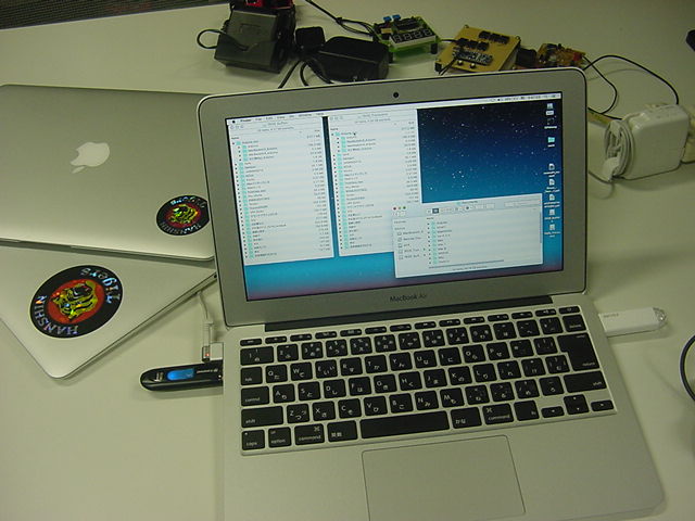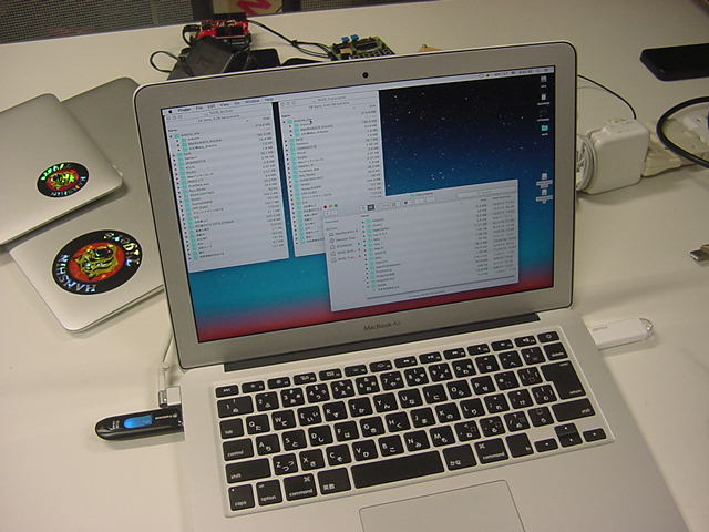 そして、常にMaxパッチについて共通化しているためにたまたま調べていなかった現役の3台のMacノート、「MacBookAir3」・「MacBookAir4」・「MacBookAir5」について、上のようにUSBメモリに吸い上げてみると、まさにこの3台にだけ「Fukuda_3LED_01」というフォルダがあって、以下のようにお仕事Mac miniにだけ入っていなかったと判明した。