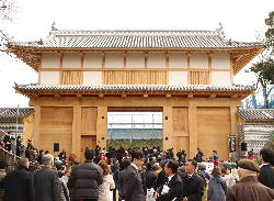 そこに、どこかで見たような上の写真のニュースが流れてきた。 「「御三家」の旧水戸城大手門を復元 市民が寄付、工事に10年」というもので、以下のようなものだった・