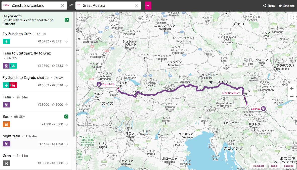 そして、これまで行ったことの無かったスイスを思い出して「Zurich」を経由地にしてみると、なんと上のようにLisbonからZurichまで空路ないし空路+電車、そしてスイスで足踏みしてから、「ZurichからLeibnitzまでの寝台列車」でライプニッツに行けばそこからGrazまでは電車で30分・・・という、なかなか美しいルートを発見してしまった。 なんせ新年度からは個人研究費の「旅費上限」というのが無くなるという規定改訂のために、特別研究が採択されるかどうか(4月1日に判明)を待たずに、エイヤで格安チケットを入手できるようになったので、日本から渡欧するフライトも、現地の宿泊も、現地での移動も、なるべく早く予約してしまうことが可能になったので、あながち妄想というだけではないのだ。