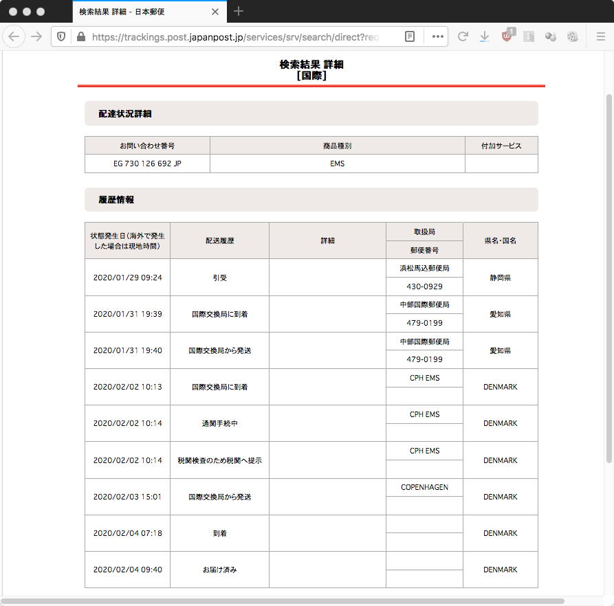 また、デンマークのBrooks先生に送ったVPP-SUACは、調べてみたら上のようにもう届いていたらしい。 何もメイルが来ないので忘れていたが(^_^;)、まぁ、とりあえず届いたのであればそれはそれでOKなのだ。