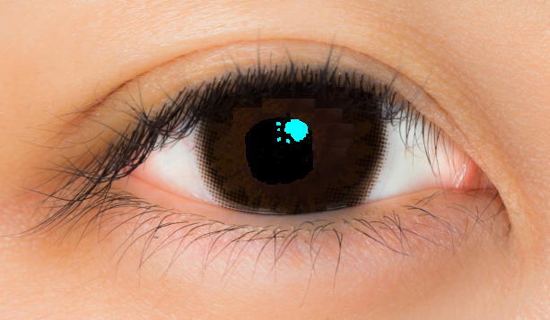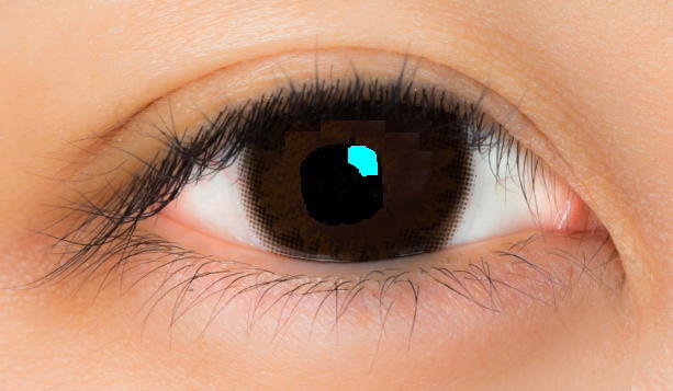 痛みがなくなり鎮痛点眼軟膏は止めたものの、ソフトコンタクトレンズで保護しつつ4種類の点眼薬を投与し続けて1週間、朝イチで眼科に行ってみると、まだ視力は0.5ほどだった。 以下の3つの写真画像はかなり適当な(眼科ではきちんと造影撮影した写真を見せてもらっているのを記憶を頼りに再現加工)ものだが、普通であれば目の真ん中にある瞳の部分(角膜の上にある保護上皮)に、最初は2枚目ぐらいの穴が開いてしまった・・・というのが「角膜上皮剥離性糜爛」の状況だった。 それが今朝は3枚目ぐらいまで「穴ぼこ」が小さくなってきて、高価な「免疫抑制剤」の支援のもとで「抗生物質」と「ステロイド」と「ムチン促進薬」のチームワークによって、次第に角膜上皮が再生されつつあるようである。
