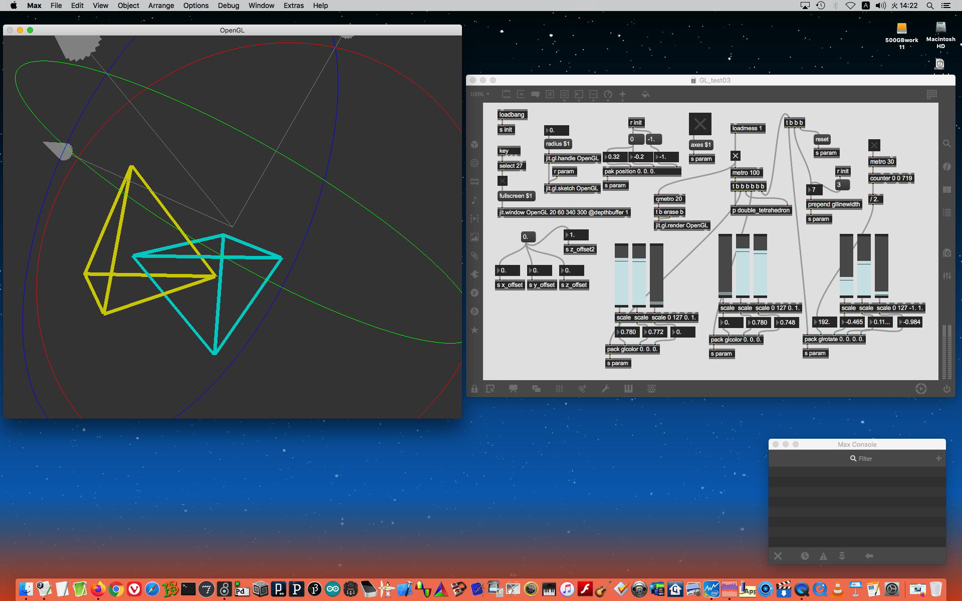 あいかわらず、メインの左目はボーッとしているが、さすがに何もしないで読書三昧に没頭・・・というのにも飽きてきたためか、ここでフト、上のようにMax8のjitterで過去にやったパッチを発掘しつつ、「新楽器」の検討のための3Dモデリングの作業をちらっと始めてみた。 もうjitterのOpen-GLなんて忘却の彼方だったが、ちょっとやってみると何となく勘所が蘇ってきた。 これはぼちぼち、今週あたりに進めていくことにしよう。