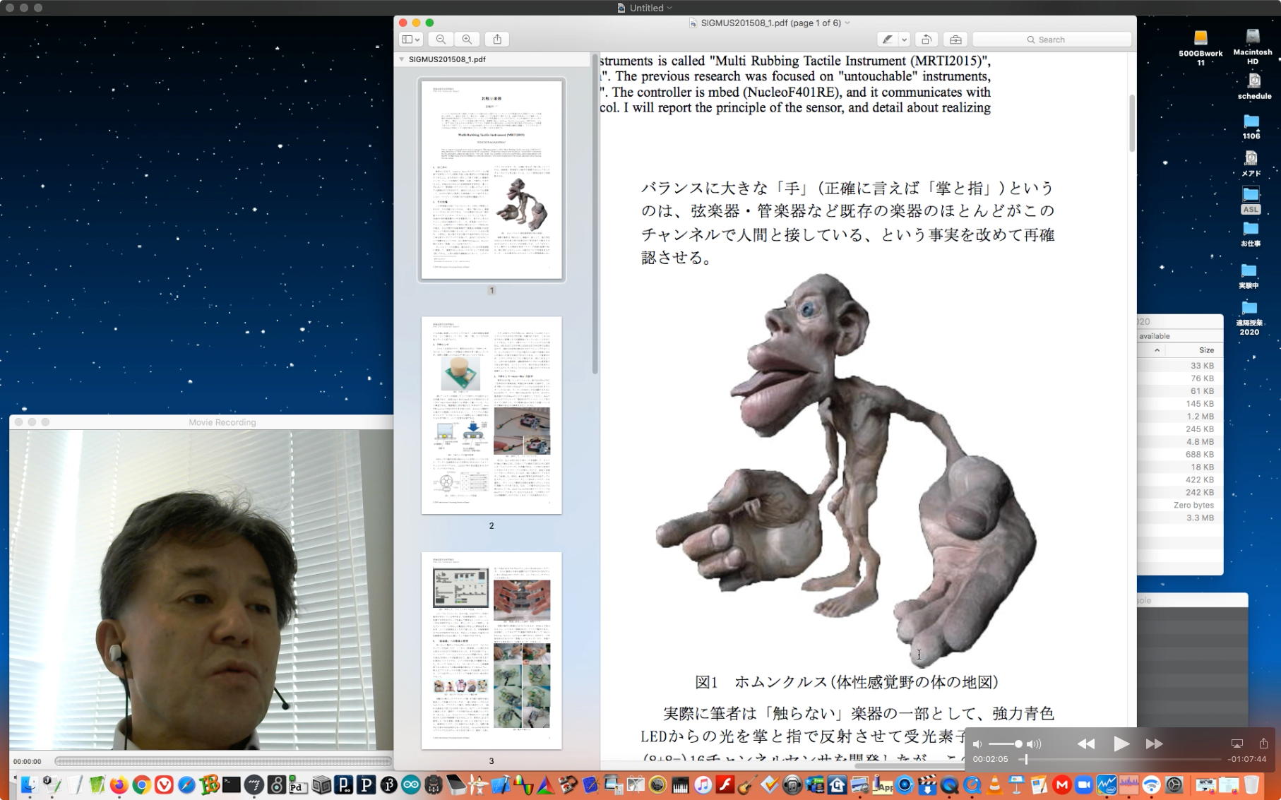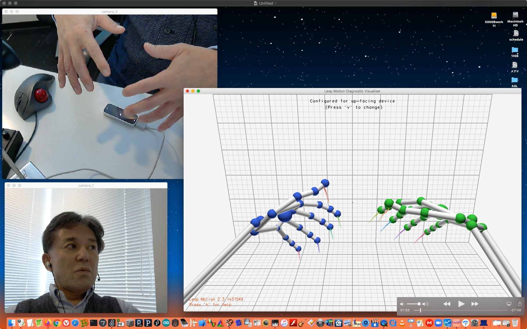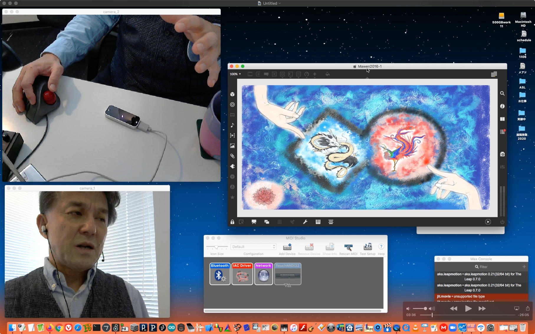 そして朝イチで上のように、昨日のリベンジということでleapmotionと、さらにiPadを出してきて「mira」と、LightPadBlock"ROLi"との3点セットで、またまた盛り沢山(30分)の Max8の紹介(6) を作った。 これをYouTubeにアップロード(1時間10分)しているうちにゼミZOOM会議の時間となって、「YouTubeアップロードと並行してのZOOM会議」という新しい実験になった。