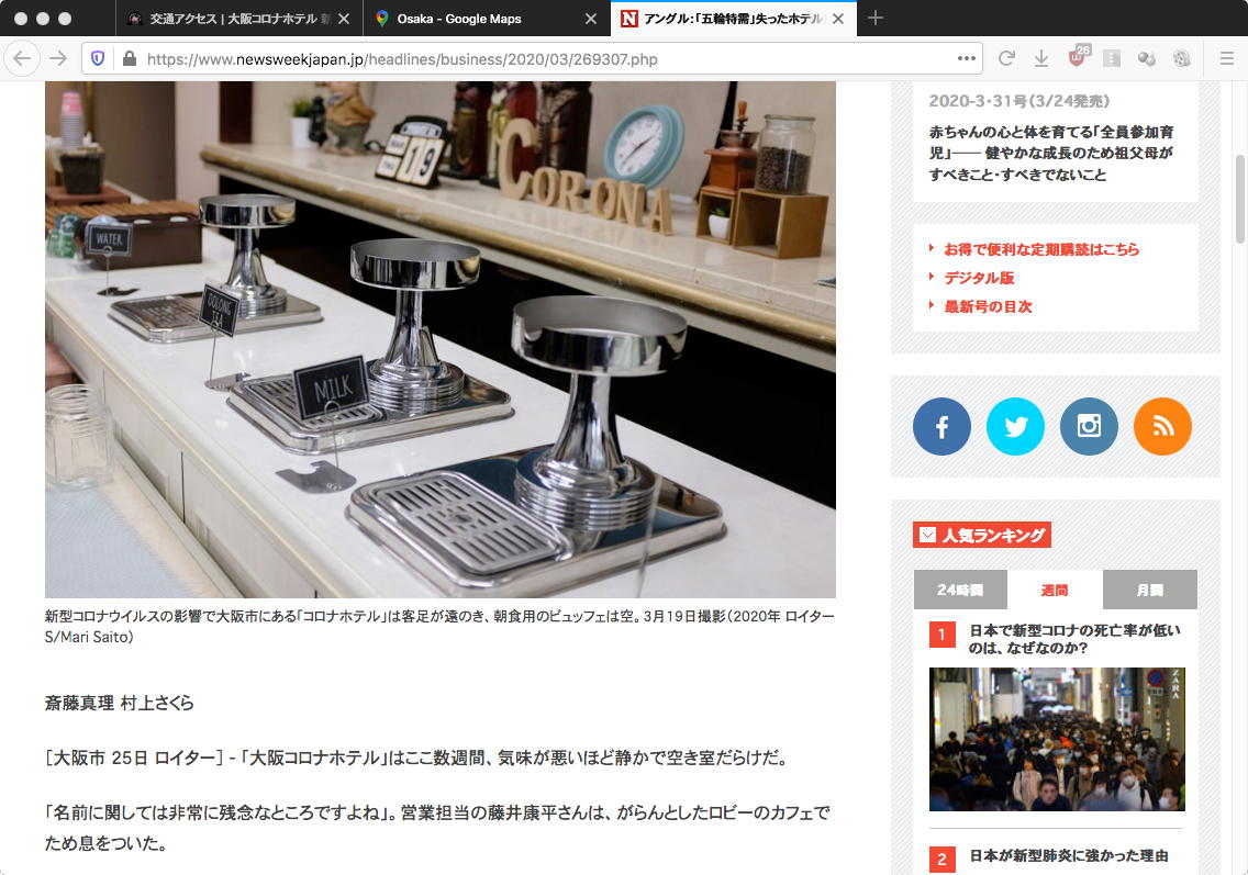 この計10冊を読むには相当の時間がかかるが、なんせ世間はCOVID-19のためにあらゆるイベントが自粛、そして昨夜のニュースで全国の小中高校などが来週の月曜から春休み、つまり3月一杯は全て休校ということになったので、その合間には格好の読書である。 色々な学会のキャンセルに続いて、SUACの卒業式後の謝恩会も中止、という連絡が届いた(卒業式をどうするかは来週まで未定)。 静岡県は都会に比べればまだまだ田舎で、「感染マップ」でもいまだ空白なのだが、「感染報告したくないので検査から逃げ腰」という噂もある。 北京から研究生が無事にやって来れるのかどうかも不明、そして予定しているアカペラの追いコンとゼミの追いコンのカラオケ大会は何としても決行したいが、果たしてどうなるか。