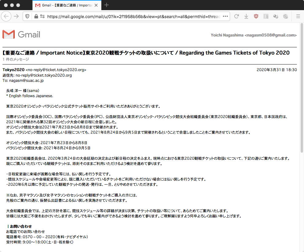 さっそくゼミの皆んなに以下のようにメイルして、「いつでも対面会話可能」と知らせた。