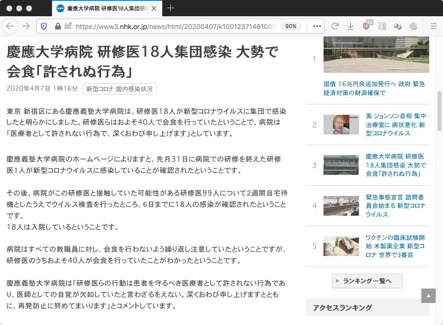 いやいや、COVID-19の状況はどのように進展するのか、まったく分からなくなってきた。 幸いに静岡県ではまだ発症ニュースが無いのだが、どうやら「ろくに検査していないだけ」(^_^;)という噂もあるのだった。 これからしばらくは、学会は全てオンラインでバーチャルに開催されるかもしれないなぁ。