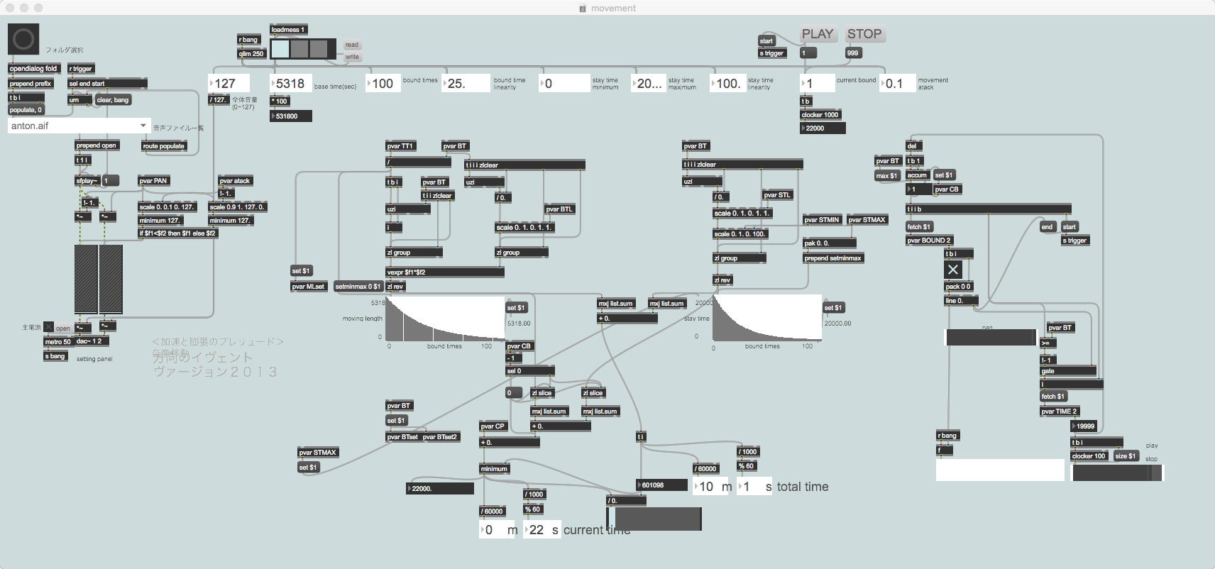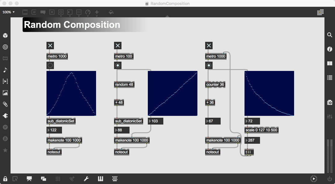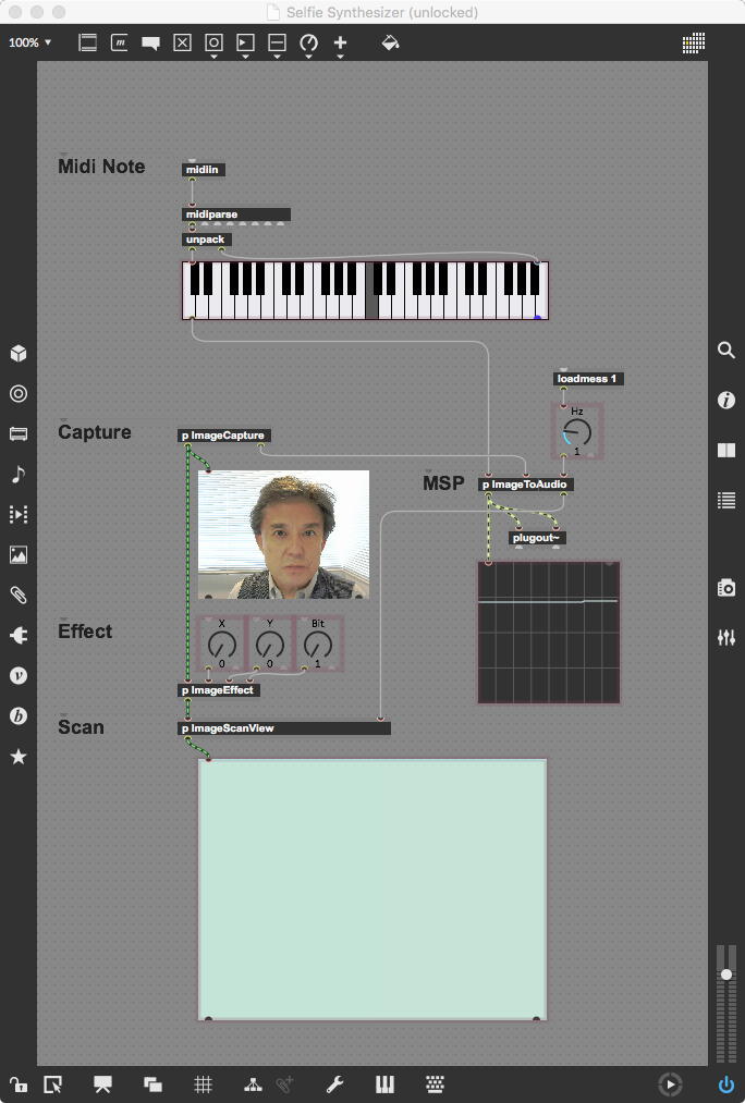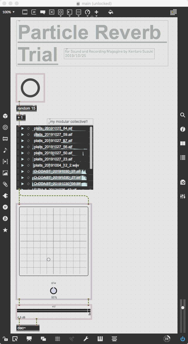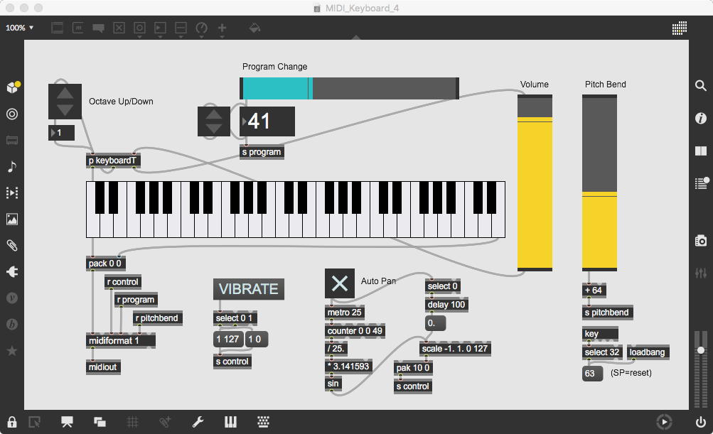 そして、今日のゼミmeetingで王さんからもらった「MIDI_Keyboard_3.maxpat」をちょっと改良した上の「MIDI_Keyboard_4.maxpat」を作って、王さんに送ってみた。 MIDIではControl ChangeのNO=1はVibrateのON/OFFだが、Control ChangeのNO=10はPanpot(左右の定位)である。 それを自動で左右に揺するという「Auto Pan」というのを加えてみた。 単なるcounterだと折り返しのあたりが不自然なので、sine関数で振っているところがポイントである。 自然界はsine関数で往復する(単振動)ので、こちらの方が良好なのだ。