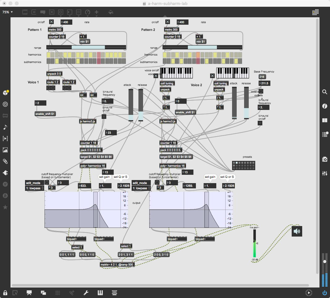 そして午後から夕方にかけて、履修登録に関する学生からの問合せとかSUAC事務局からの連絡(学生委員会matter)とか、あれこれ多数のメイルが到来したところに、北京の王さんから「Maxで新しいパッチSubtraction synthesizer を作りました。ご指摘のほど、宜しくお願い致します」と、意欲的なパッチが届いた。 しかし目先のメイル対応(合計で10数本)に追われたため、「コメントは明日に出します」とだけ予告メイルした。 ちょうどこれは格好のMax検討テーマなので、242KBになったこの日記のHTMLをここで終えて、続きは Sketching日記(5) に引き継ぐことにしよう。