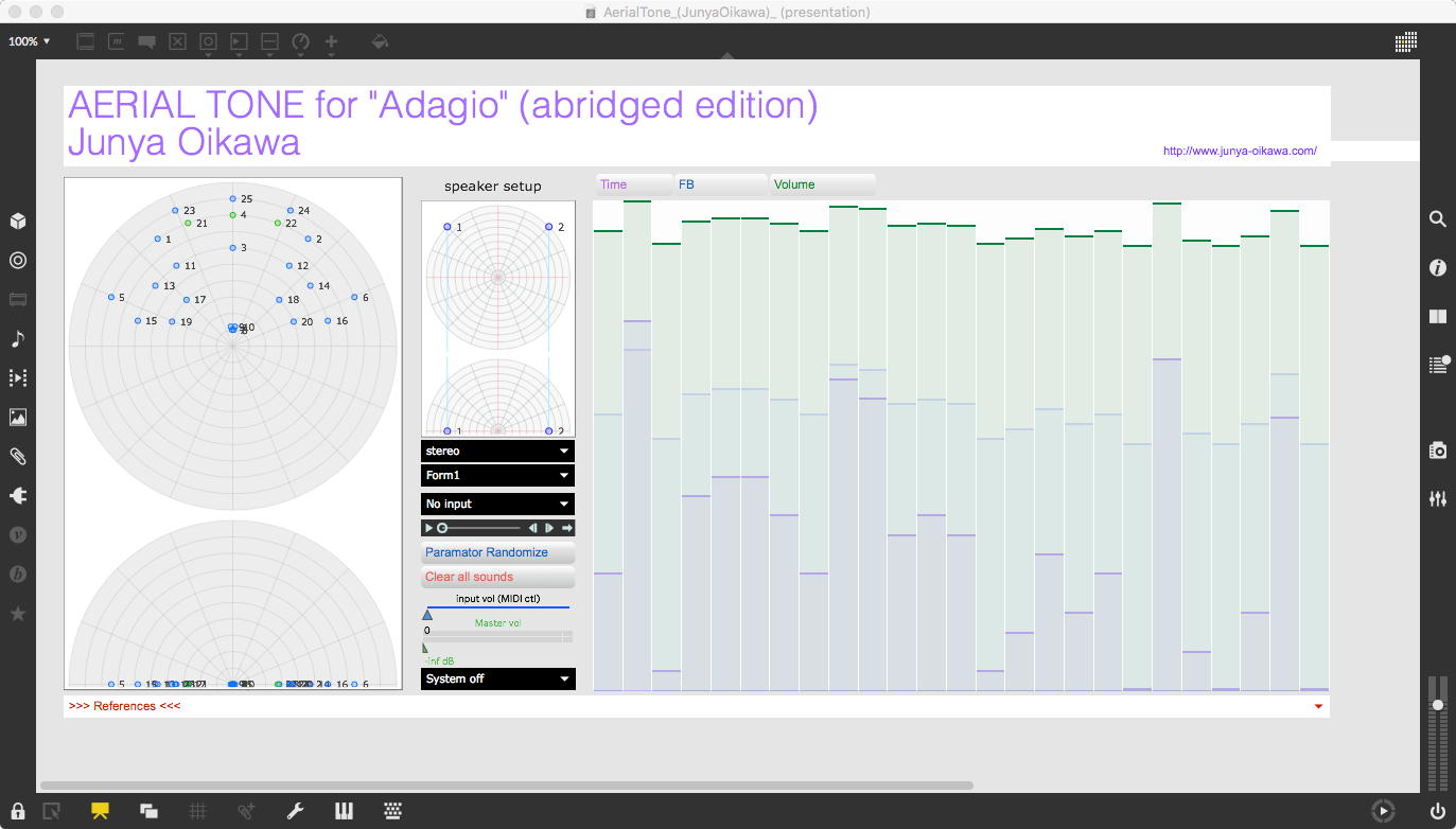 実は、ポーランドのRadek Rudnicki氏からは、彼のプロジェクトのブックレットとアルバムが完成したという情報と、次のプロジェクトに加わって(ポーランドに来てWorkshopをやって)欲しい・・・という嬉しいメイルも届いていたのだが、あれこれ忙しくてスグにはちゃんとメイルが読めない。 とりあえずここにリンクを置いておくと、プロジェクトのカタログPDFが これ であり、アルバムの音響作品をストリーミングで視聴したり購入できるサイトが ここ である。 かれの「日本のサウンドを素材として共有して作曲しよう」というプロジェクトに賛同した多くの作曲家(日本人が多い)の、なかなか面白い音楽音響作品が並んでいる。 僕は別途にダウンロードサイトのURLももらったので、現在、それらを手元にダウンロード中であるが、これは明日の朝まで放置する分量(5GB以上)である。