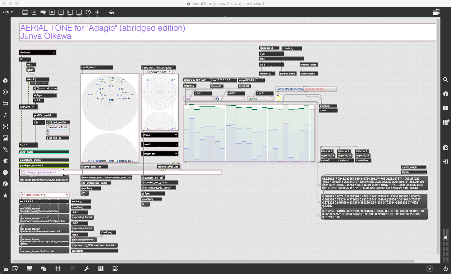 日々刻々と、あらゆる事態が進行している。 6月にヤマハ本社で開催される予定だった音楽情報科学研究会(音学シンポジウム)は、予想通りに このように オンライン開催、ということでキャンセルされずに実行されることになった。 この情報は今日これから一般に公開されるが、既にプログラムは決まっていて、僕の名前もある。 僕の日記でも糞味噌に貶していた「AIひばり」のヤマハの発表もある(^_^;)。 しかし、オンラインということで土日の2日間、ずっと研究室Macの前に拘束される・・・というのも、ちょっとしんどいかも。そして、一昨日の午後に、研究生の王さんがまだCOVID-19のために来日すら出来ていないという窮状を教務室長と研究科長に訴えた僕のメイルは、ちゃんとSUAC学内で引き継がれつつ展開して、今朝、入試室長から届いたメイルには「研究生の王さんの現状についてのメールを拝見し、何とか王さんを安心させてあげたい、と個人的に思います」とまで書かれていた。 ちなみにNot Foundになるようにしているが、その経緯は これ である。 その後、王さんからMaxパッチに関する質問が届いたので即答で解説と別のサンプルを送ったり、というのもあった。