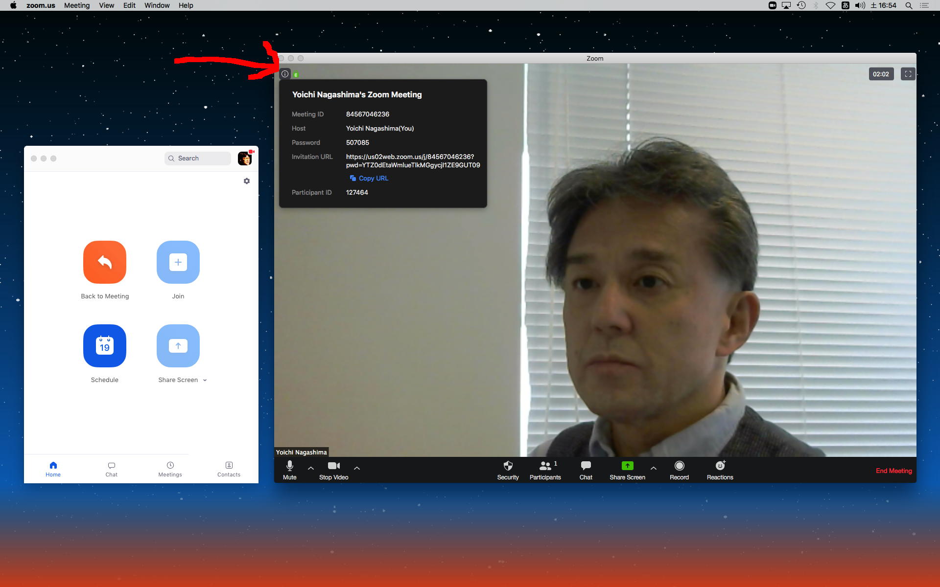 さて、「スクリーン共有」で自分のデスクトップを全メンバーに見せる、というのは出来たが、さっそく管理者として「勉強」しないとイケナイ事項がいくつも出てきた。 まず、QuickTimePlayerXの「デスクトップ・レコーディング」で今回のWeb会議を記録しようとしたが、コンソールが出て来なくて失敗したので、ローカルな会議記録の方法は要チェックである。 さらに、Max8が走っているとネットワークが超重くなるというバグ?との関係も調べておかないといけない。 いちばん最初に確認したのは、会議室運営者として新しい会議をスタートさせると、その度に新しいナンバーとパスワードが生成される、という当たり前の事実である。 以下、目立つようにチェック項目を小見出しにすることにした。