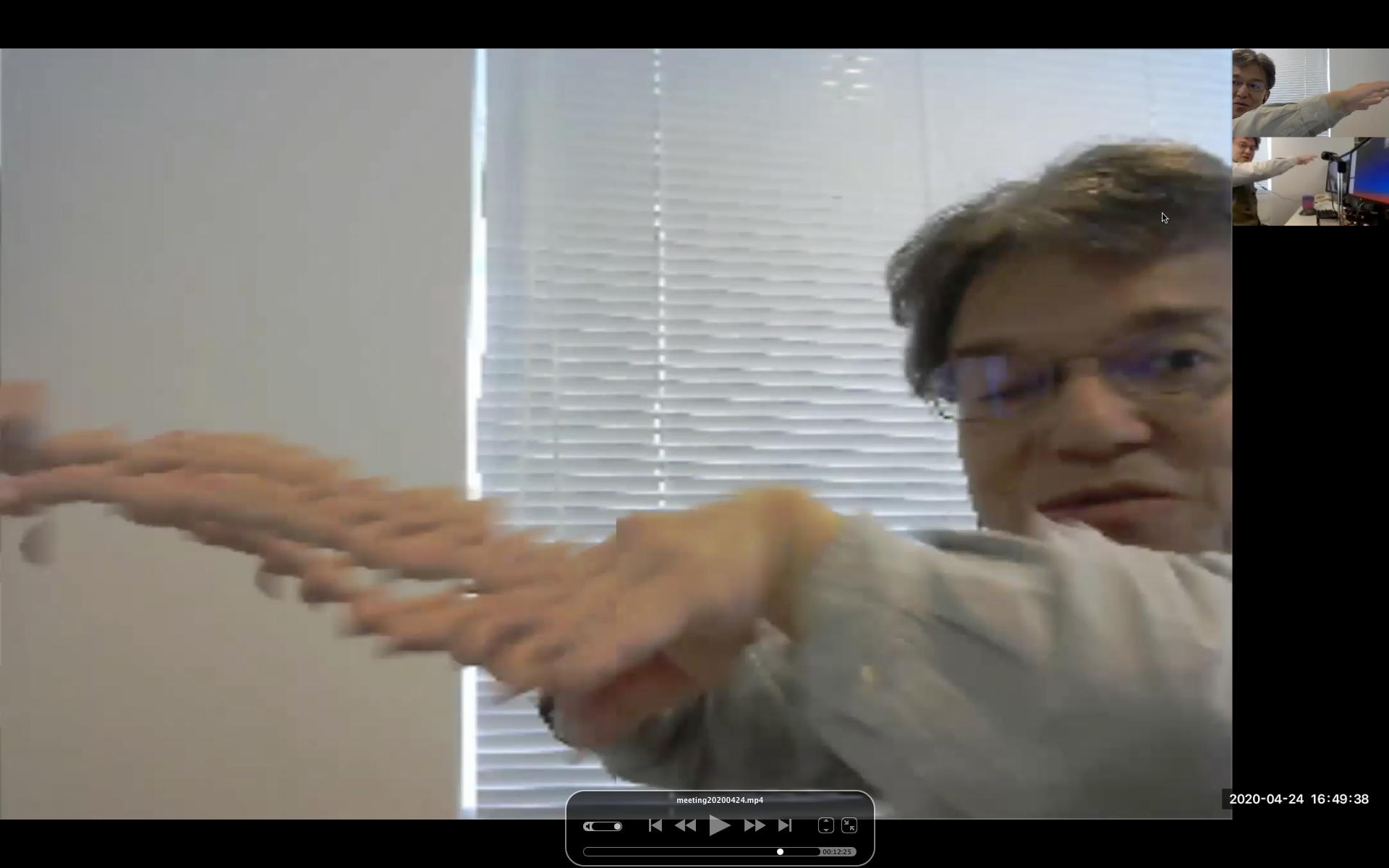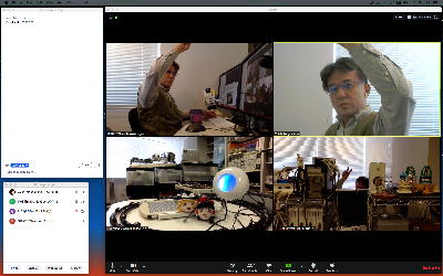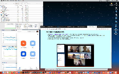 祝日である。 昨日は 米軍がUFO撮影に成功? 「謎の現象」映像公開 とかいうニュースはあったものの、COVID-19の状況は相変わらずである。 そして今日は、先週末の王さんとのZOOMが激重だったのを再確認したくて、ゼミ有志に「祝日の実験ZOOM会議」を呼びかけたところ、王さんと実習指導の高見さんが手を挙げてくれたので、以下のように3人(4台)の実験ZOOM会議を行った。 しかし今日はネットの状況はなかなか良好で、「微重」というぐらいだった。