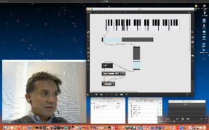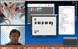そして、北京の王さんからは「MIDIキーボード」(PCのキーボードを音楽キーボードにする)の改訂版として、グラフィックがスッキリしてシーケンサの付いたものとして送られてきたが、僕はpresentation modeとか「ツールバーを隠す」というような新しい機能とは無縁だったので、ZOOM会議で質問した。 ところが、週末の土曜だからかネットが強烈に細くて重くて、王さんのカメラ画像(超低画質)は動画というより静止画であり、マイクの音声も切れ切れになって聞こえず、仕方ないのでチャット画面にお互いに打ち込みして通話した。 ZOOMしながらMax8を起動したら王さんのカメラ画像が真っ暗になった(^_^;)が、quitしてMax7を起動したらちょっとマシだったので、今後は「ZOOMでMax」の場合にはMax7を使うことにした。 ちなみに(リンク切れするが)全42分の記録動画は これ である。 中国の国内では、どうも海外のサイトからダウンロード出来ないらしいが、WebサイトやZOOMは大丈夫なのだという。 最初に僕のMacでうまく鳴らなかったのは、Maxによくある音源の設定ということで解決して、このパッチ作品は「完成」ということになった(^_^)。