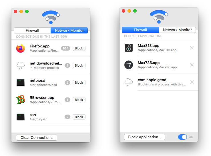 そこで「Radio Silence」という名前を検索して、その The easiest network monitor and firewall for Mac というサイトに行ってみると、どうやら「そのMacでネットにアクセスするアプリをモニタ(監視)」して、「アプリごとにネットへのアクセスをブロック(ファイアウォール)」する、というものらしかった。 まずは無料体験としてダウンロード・インストールしてみると、マニュアルも何も読まずにその動作は簡単明瞭、そしてMax8を起動すると謎のネットアクセスが確認できて、その横の「Block」というボタンをクリックすると、ずっと悩まされていたトラブルがスッキリと霧散解消した(^_^)。 そこでその場で9ドルというライセンスをオンライン購入して正規ユーザとなった。 これでもう、この問題は「完全に解決」である。