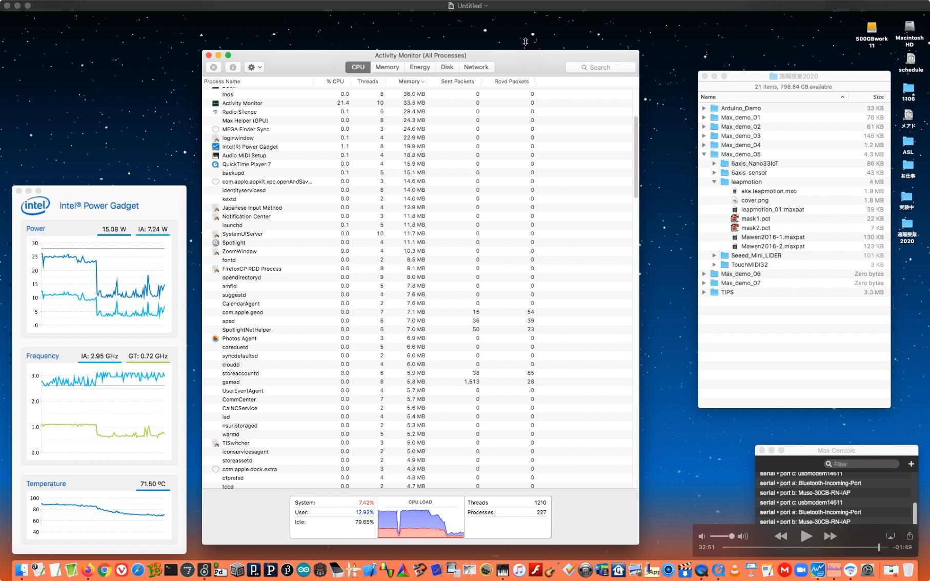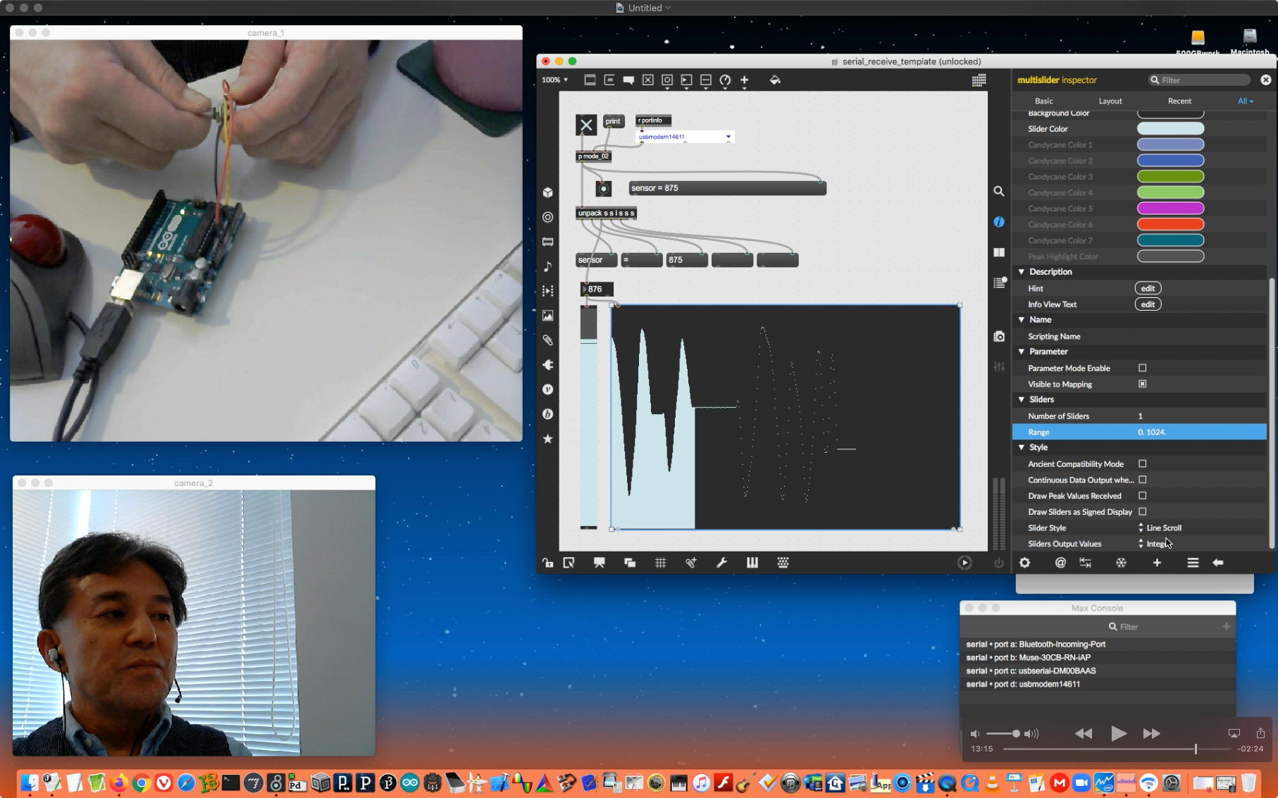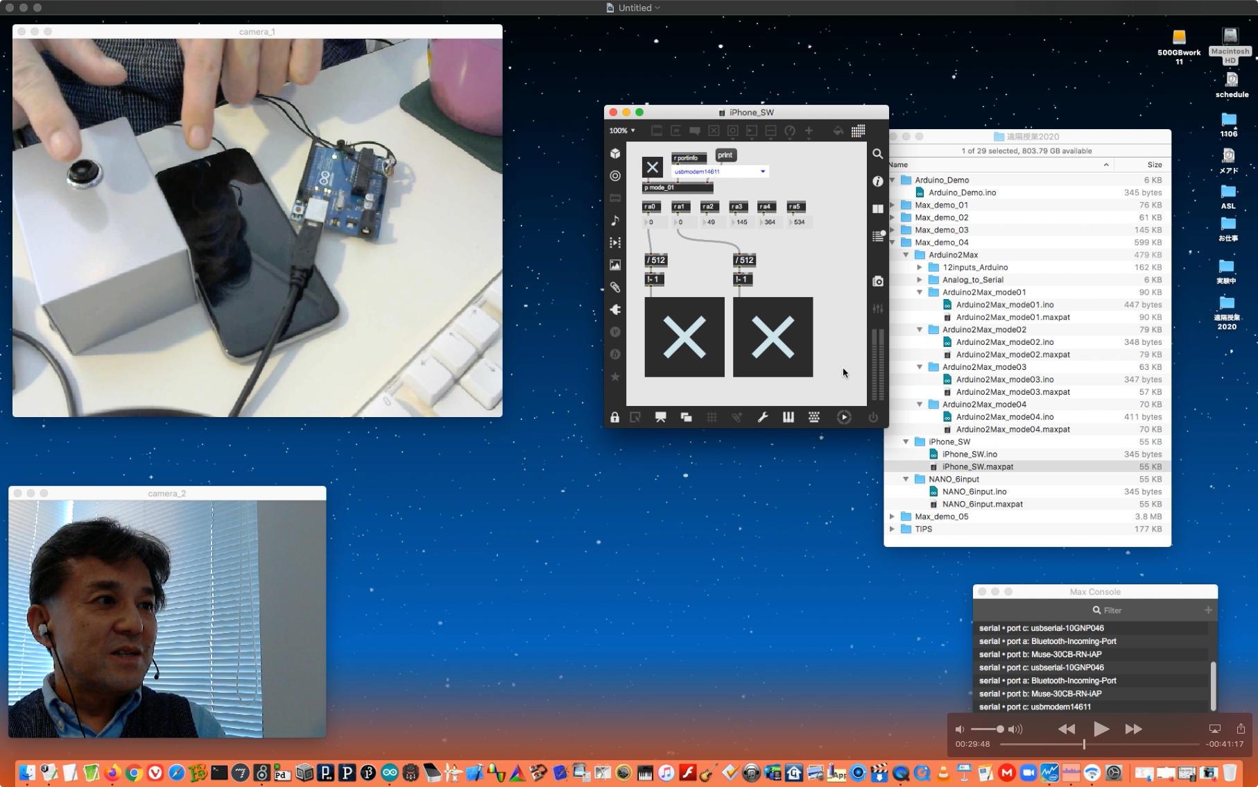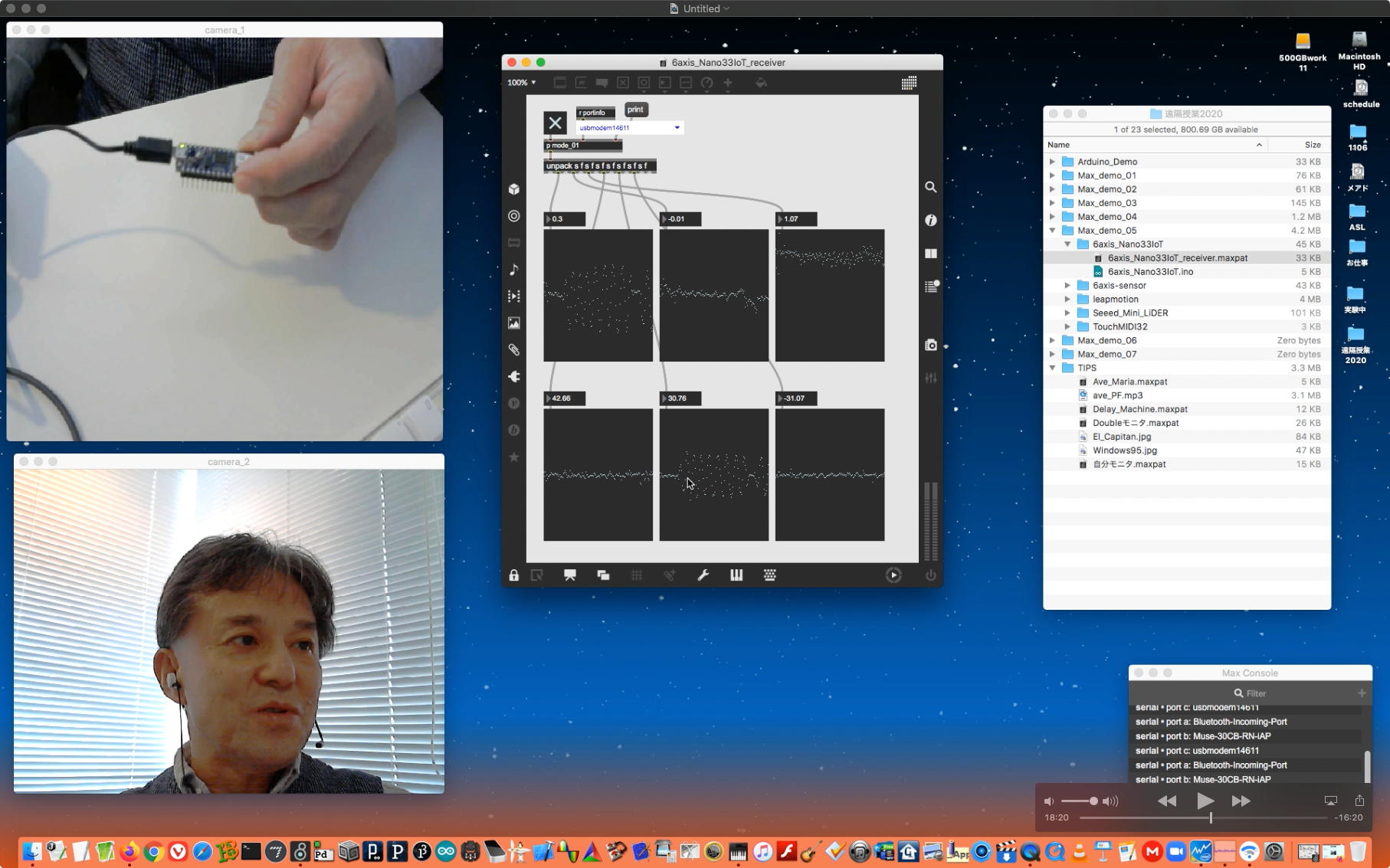 そして、ダブルカメラを断念してQuickTimePlayer7Proの画面を添えて、続きとして上のような10分ほどの Max8の紹介(3) を記録してYouTubeに上げた。 これはSONYのFelicaリーダだけを繋いでserialオブジェクトで処理しているので、ArduinoとNucleoF401REとかPropellerとかのマイコンでないところが特殊な例である。 次の教材動画としては、いよいよArduinoとMax8を繋ぐ種のテクニックについての伝授公開ということになる。