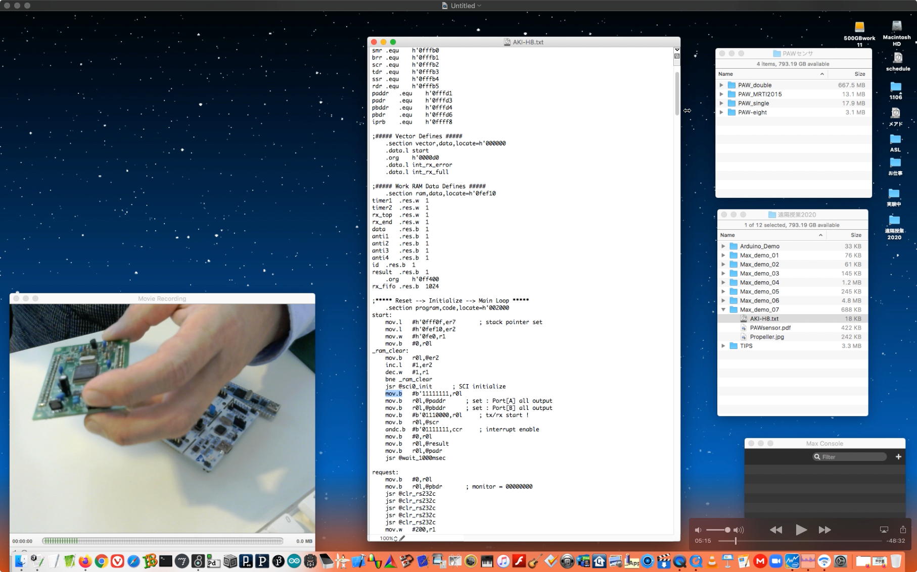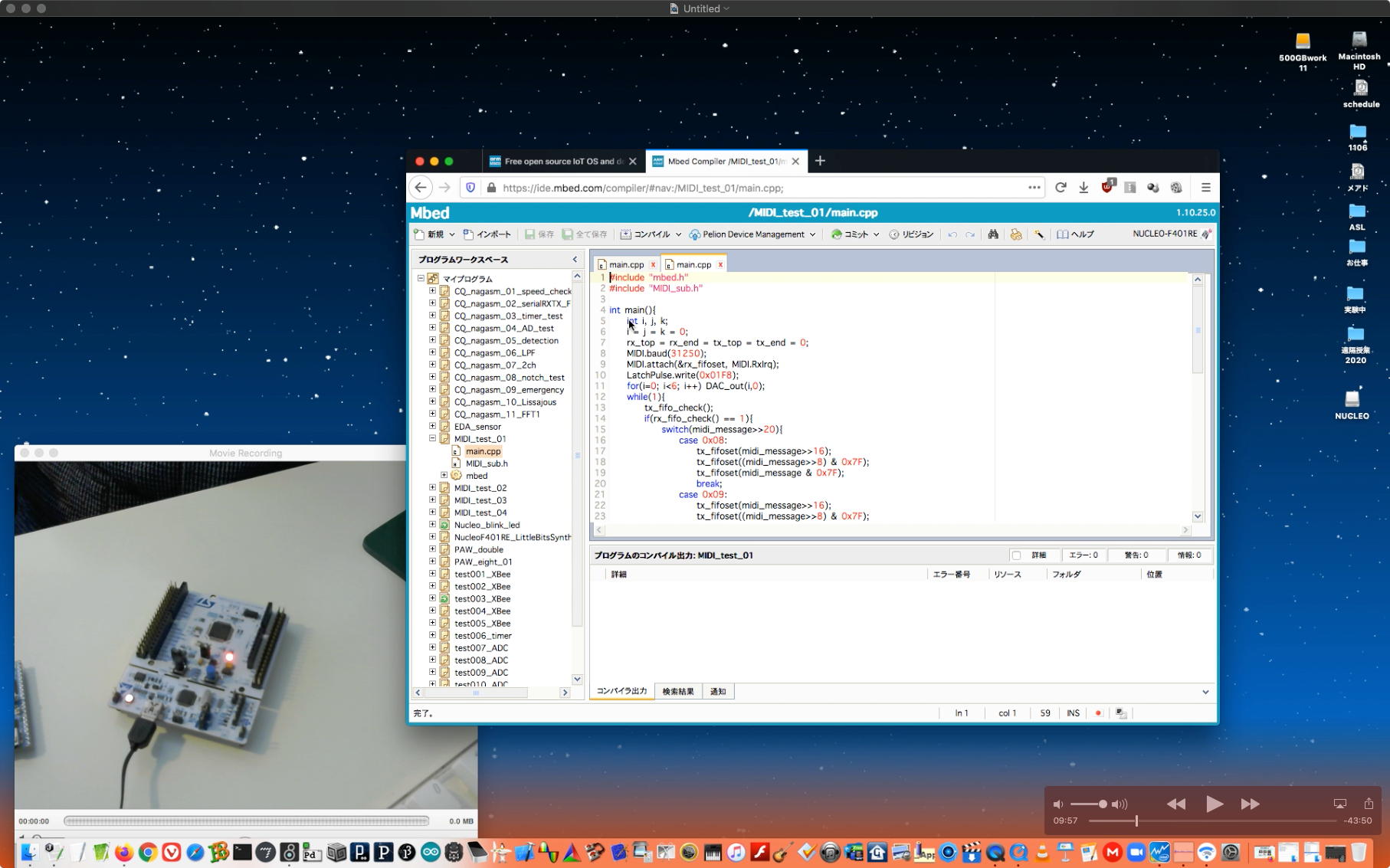 そして午後には気合いを入れて、上のようにAKI-H8とPropellerも紹介しつつmbedに行き、NucleoF401REとPAWセンサの組み合わせの4種を即興で解説するという、またまた盛り沢山(54分)の Max8の紹介(7) を作った。 準備段階で判明したが、しばらく何年も開発していなかったためか、「PropellerのIDEであるbstがPropellerを認識しない」・「mbedのIDEで謎のエラーが出る」という現象を確認した。 これは今後、新しいシステムを作る時には壁となってしまうので、どこかできちんと解析・解決しておかないといけない宿題である。 そのYouTubeへのアップロード所要時間は「1時間50分」と言われたので、またまたアップロードを放置したまま帰宅することにした。