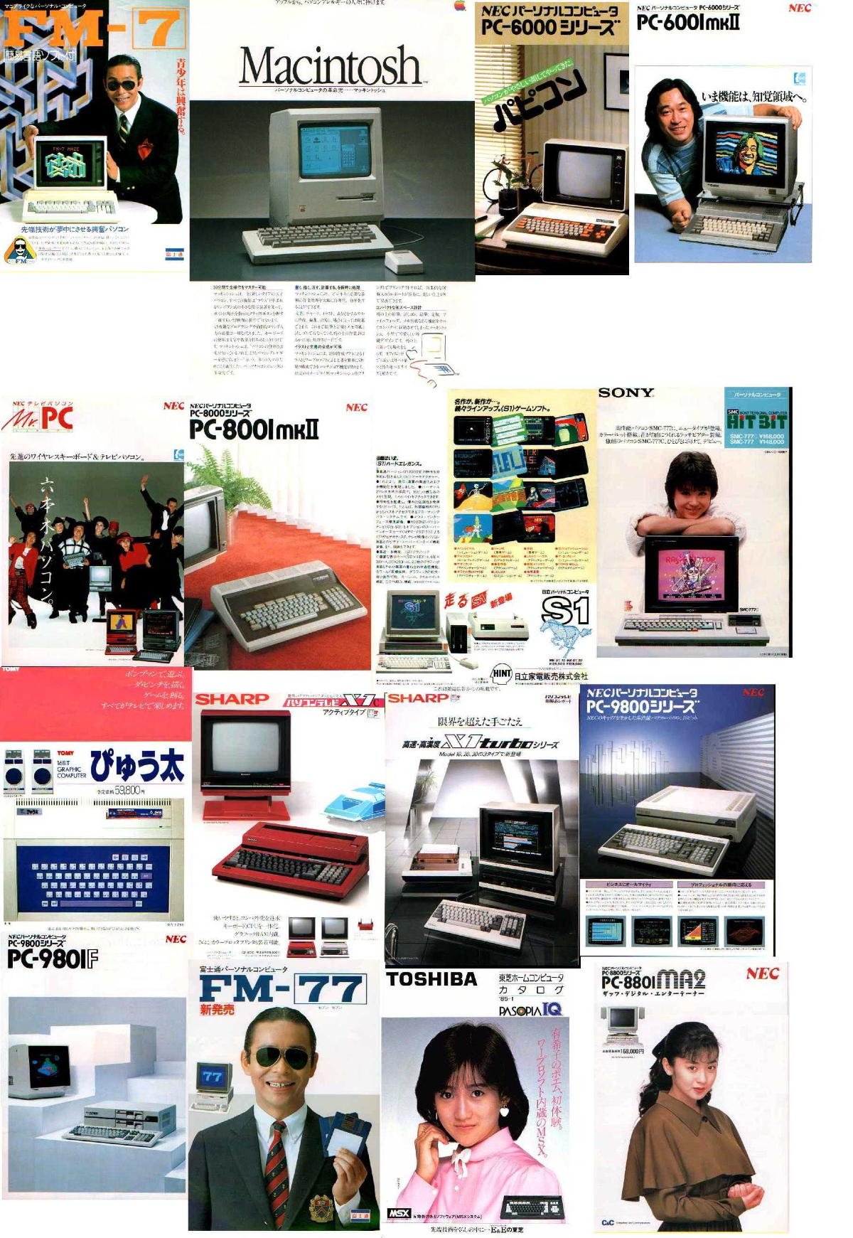 連休に外出できないので昔の写真をスキャナで取り込んで復活させた・・・という高校の同窓生からの懐かしい写真とメイルが届いたのを契機に、ちょっとHDDの奥底の古いデータを発掘していたら、上のような「昭和のパソコン集」という画像が出てきた。 ただしこれを見て「懐かしい」と言えるのはアラフィフ以上だし、むしろ今の学生に見せたらとても新鮮なのかもしれない。 当時はまだ、日本の電気メーカーに元気があったのだ(遠い目)。