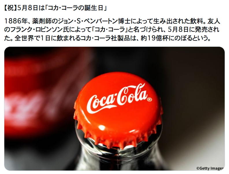 過去には1106研究室ページに これ とか これ とか これ とか これ とかを置いていたが、その中に潜んでいた「コカコーラの日」というのは、気付かなかった。