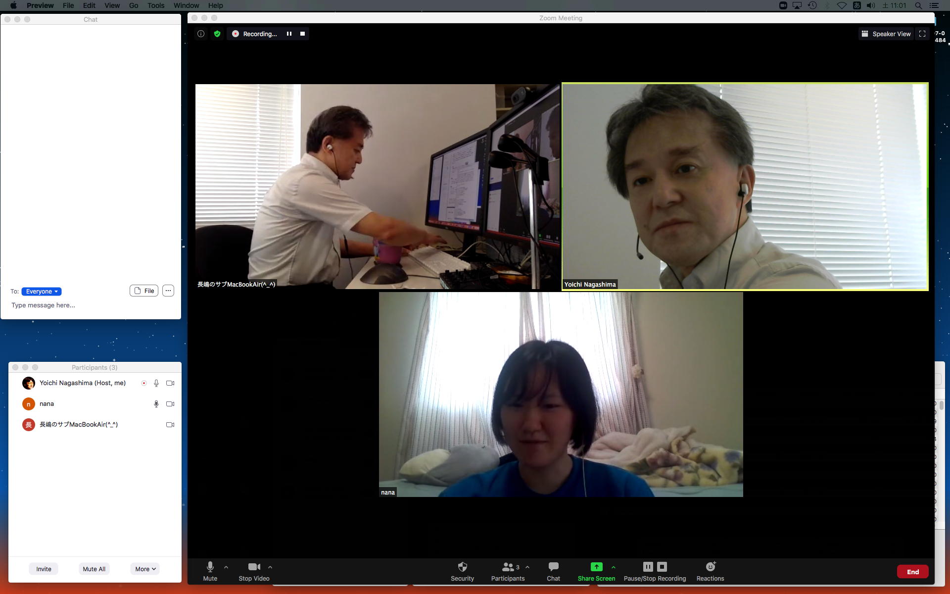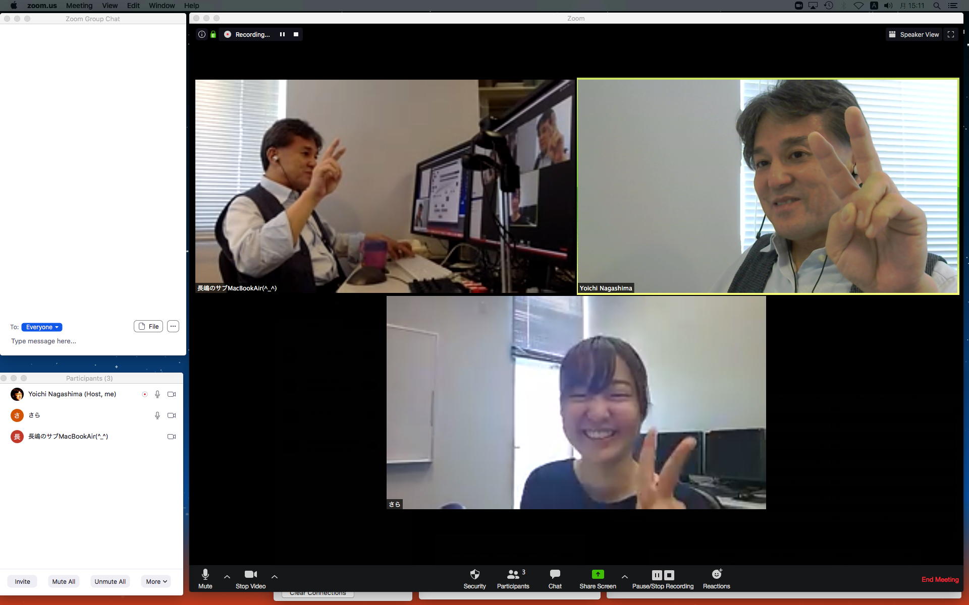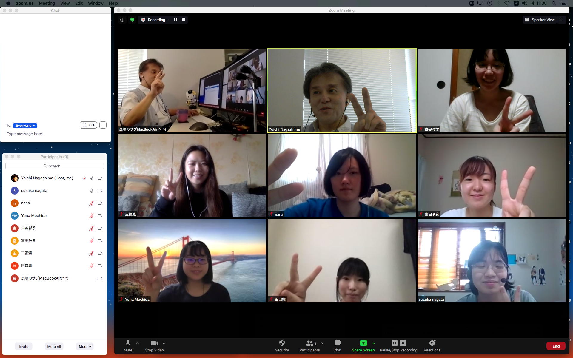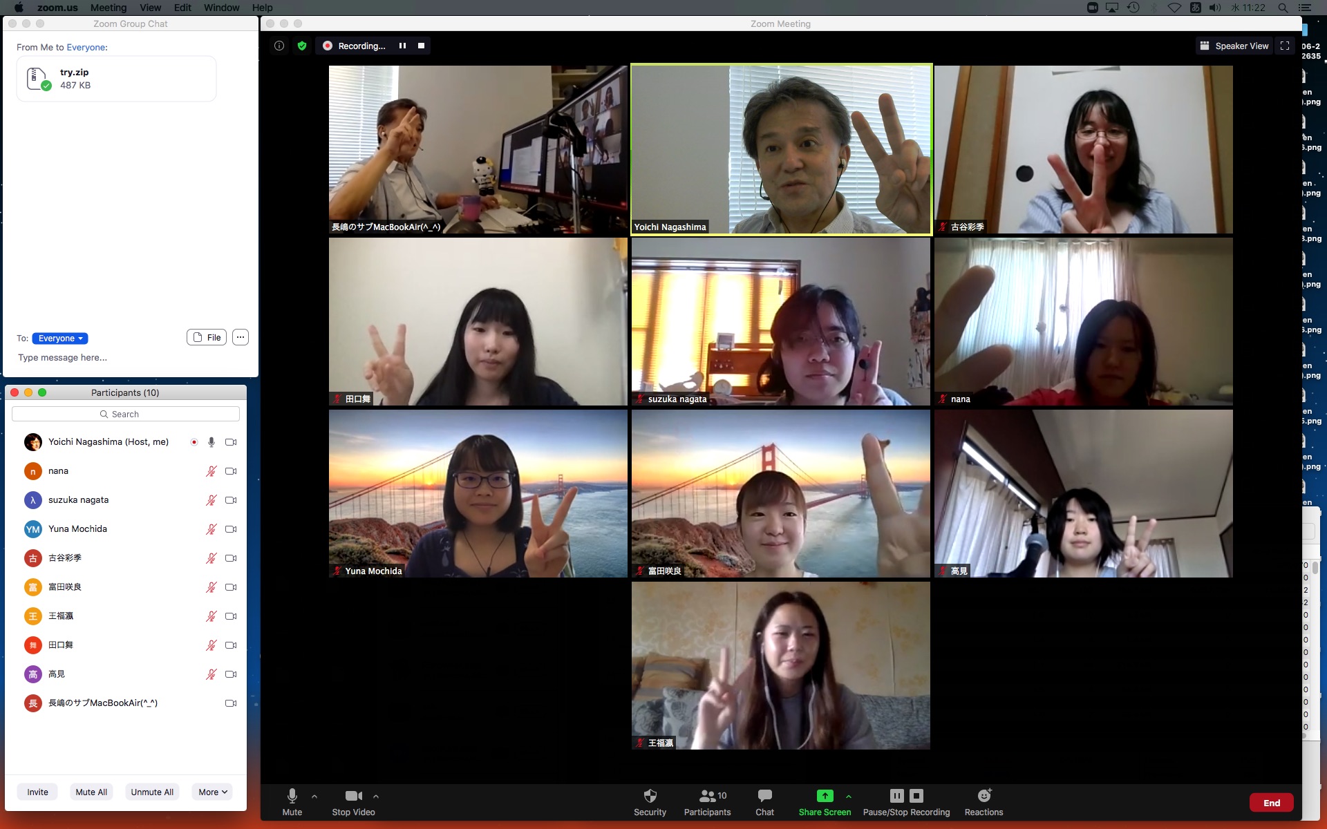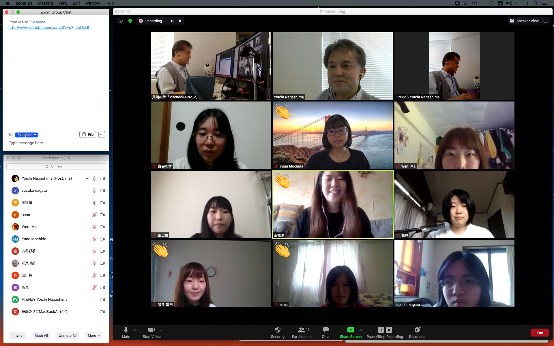 昨日の昼過ぎにアップして受講学生に告知した「サウンドデザイン」だが、もう昨日の日付で3人からレポートのメイルが届いていた。 これにいちいちコメントするので、なかなか前途は多難である。 そして2限には、5/11から開始の新学期としては初めての「ゼミZOOMミーティング」を開催した。 初めてとなった理子ちゃんは「顔出しナシ」というスタイルを貫いたが、3回生で加わった古谷さんと富田さんも参加、茨城県日立市から参加のOG・馬ブンさんを含めてゼミ全員が揃って、以下のようにそれぞれの進捗を報告した。