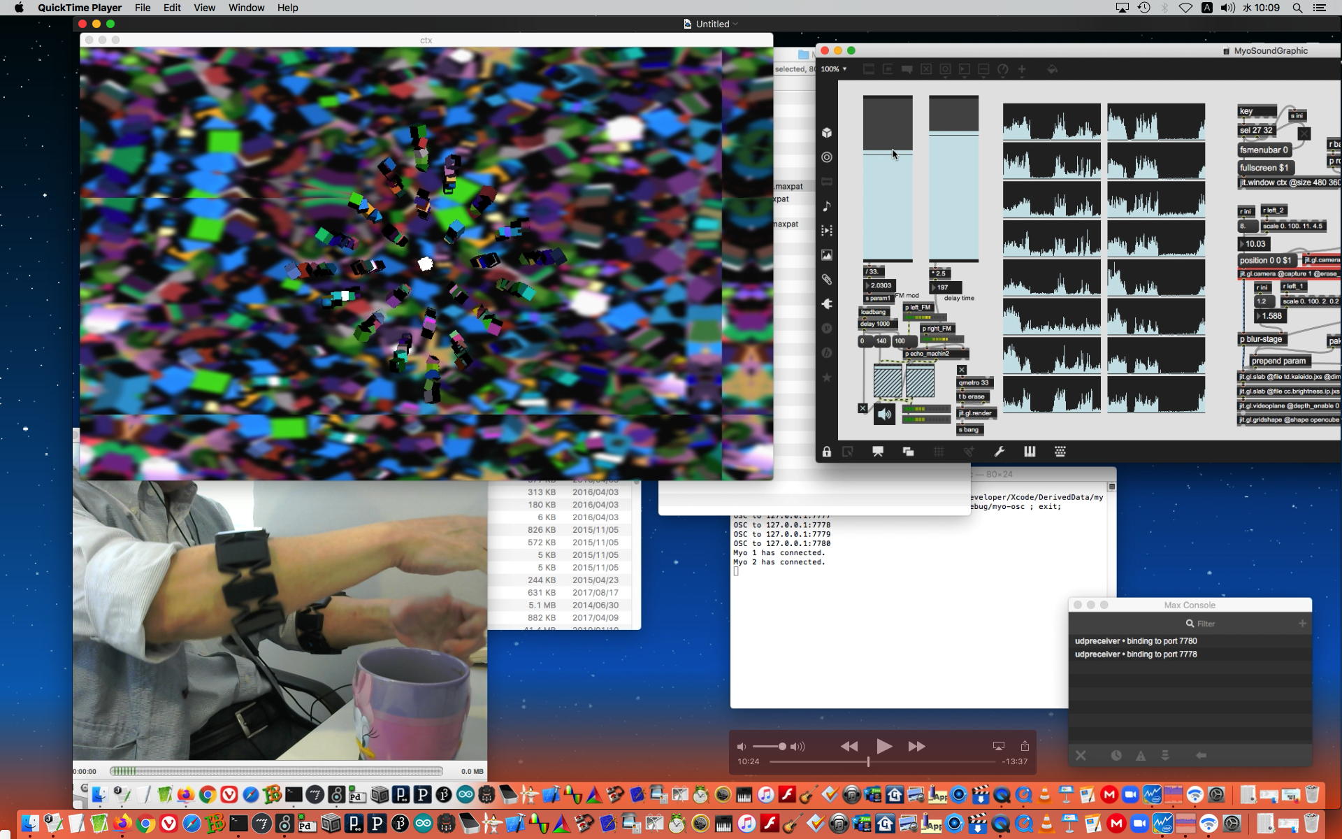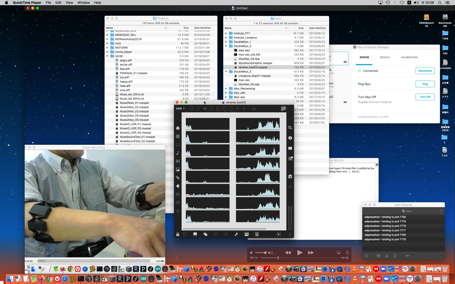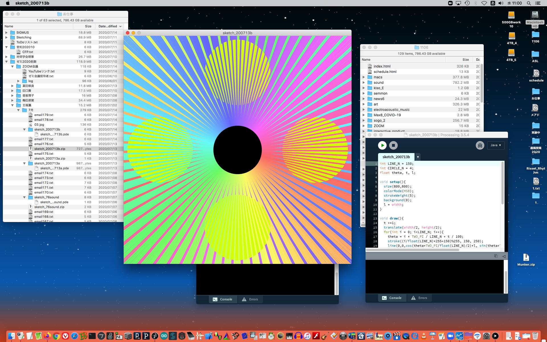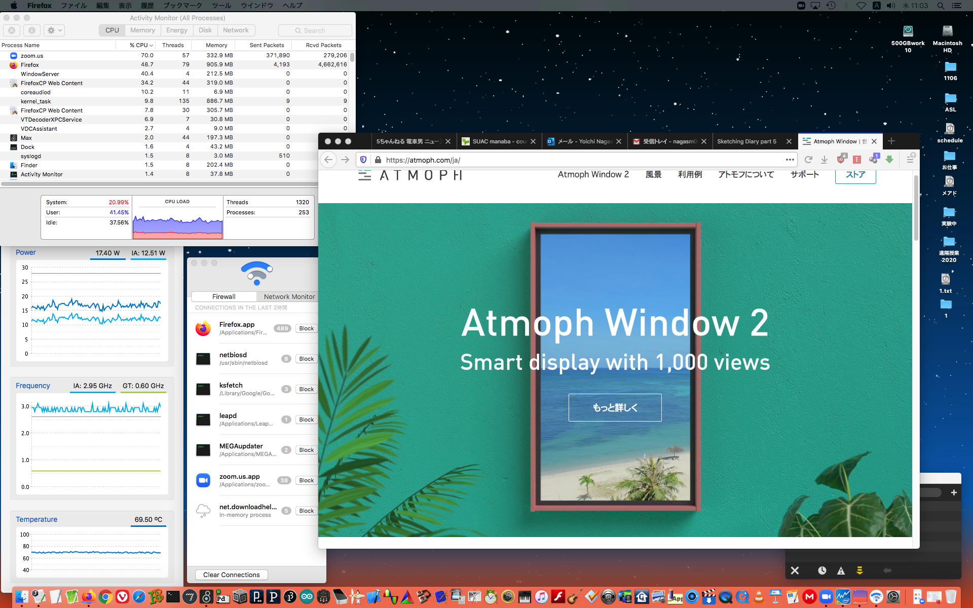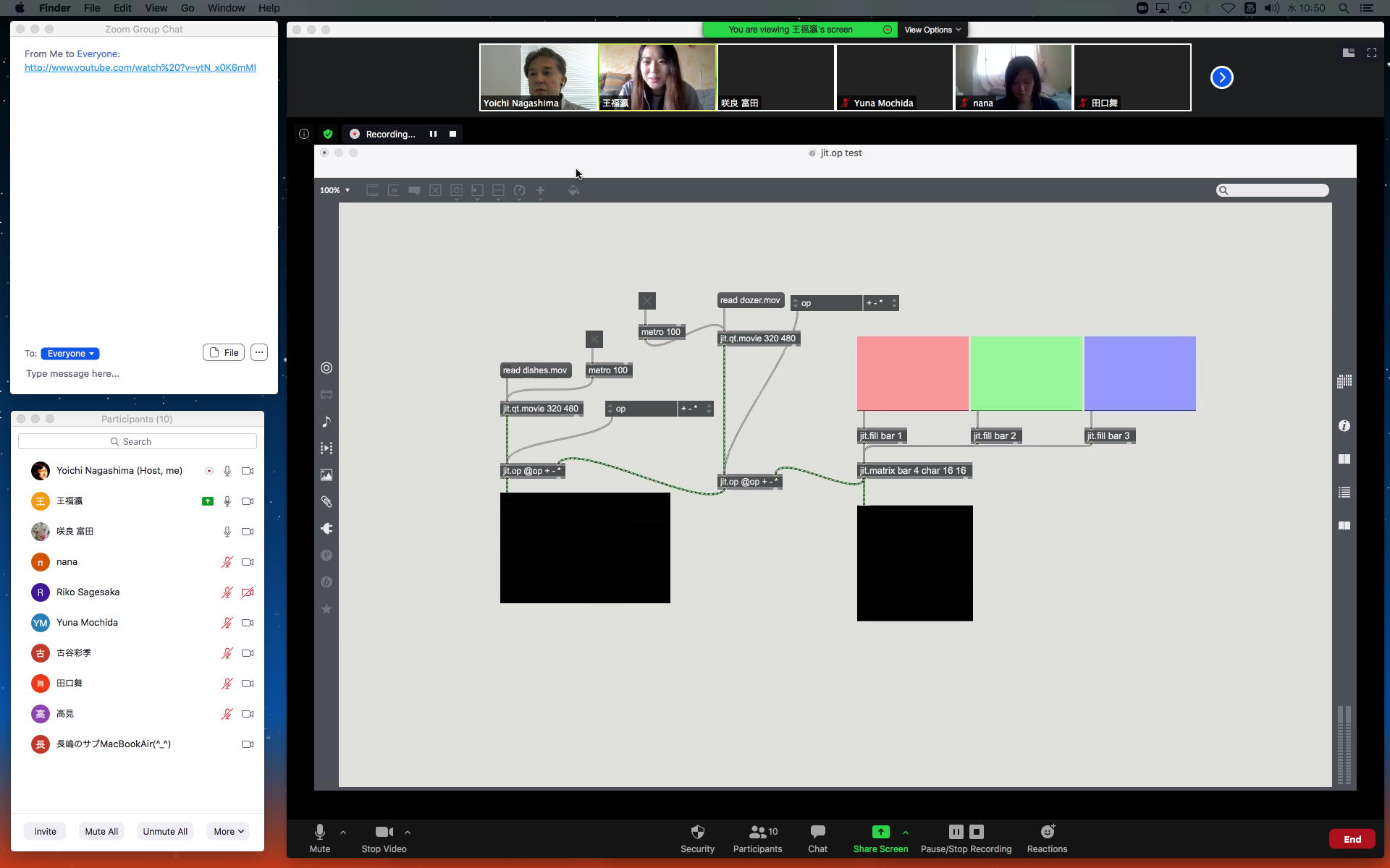 ということで、午前10時過ぎにようやく「 基礎演習E 」の 授業動画 60分7.1GBがmp4(1.46GB)になったものの、昼休みになっても「 サウンドデザイン 」の 授業動画 75分9GBのmp4エンコードが終了せず、CPU温度は80℃でCPU使用率も合計200%ほどのまま、13時からの富田さんとのZOOM会議に突入した。 同じSUAC構内ではあるものの、音声に時々ノイズが入ったのはmp4エンコードの影響だったようだが、ZOOM特訓でMaxプログラミングを手取り足取りで教える、というのはなかなかに効率が良くて、気付いたら1時間半ほどやってしまって、無事に特訓は進んだ。 ただし「 サウンドデザイン 」の 授業動画 75分9GBのmp4エンコードは、Max8とZOOMの走る裏でずっと進んでいるものの、終わる気配がないままだった。 ちなみに(リンク切れするが)全90分の記録動画は これ である。