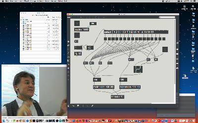 そして今日、土曜日には、ゼミの梅田さんと上のようにZOOMアポのミーティングで、「総合演習II」のプロジェクトに関する若干の軌道修正の作戦会議を行って、およその方向性が見えてきた。 ちなみに(リンク切れするが)全24分の記録動画は これ である。 そして、それ以外の時間はとりあえず来週公開の教材作りを棚上げして、何かを見出したような気がする(夜中にフト目覚めても、さらには夢の中でも、Maxプログラミングを考えている(^_^;))幻想を追いかけて、懸案のRisset Rhythmの実験を進める・・・という幸せな週末となった。