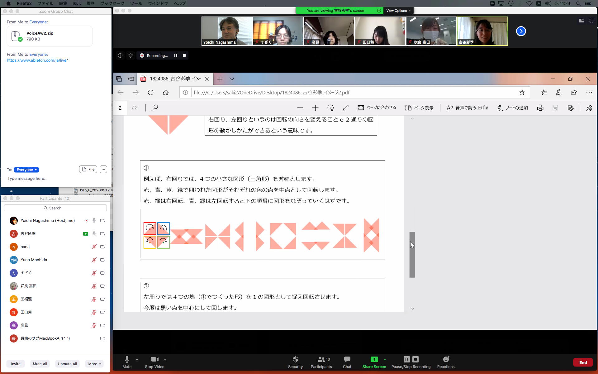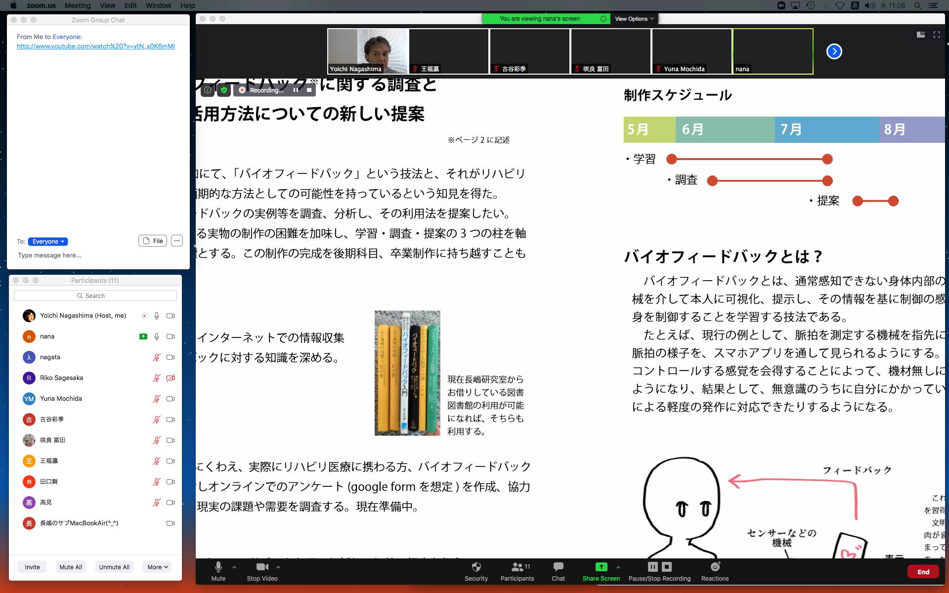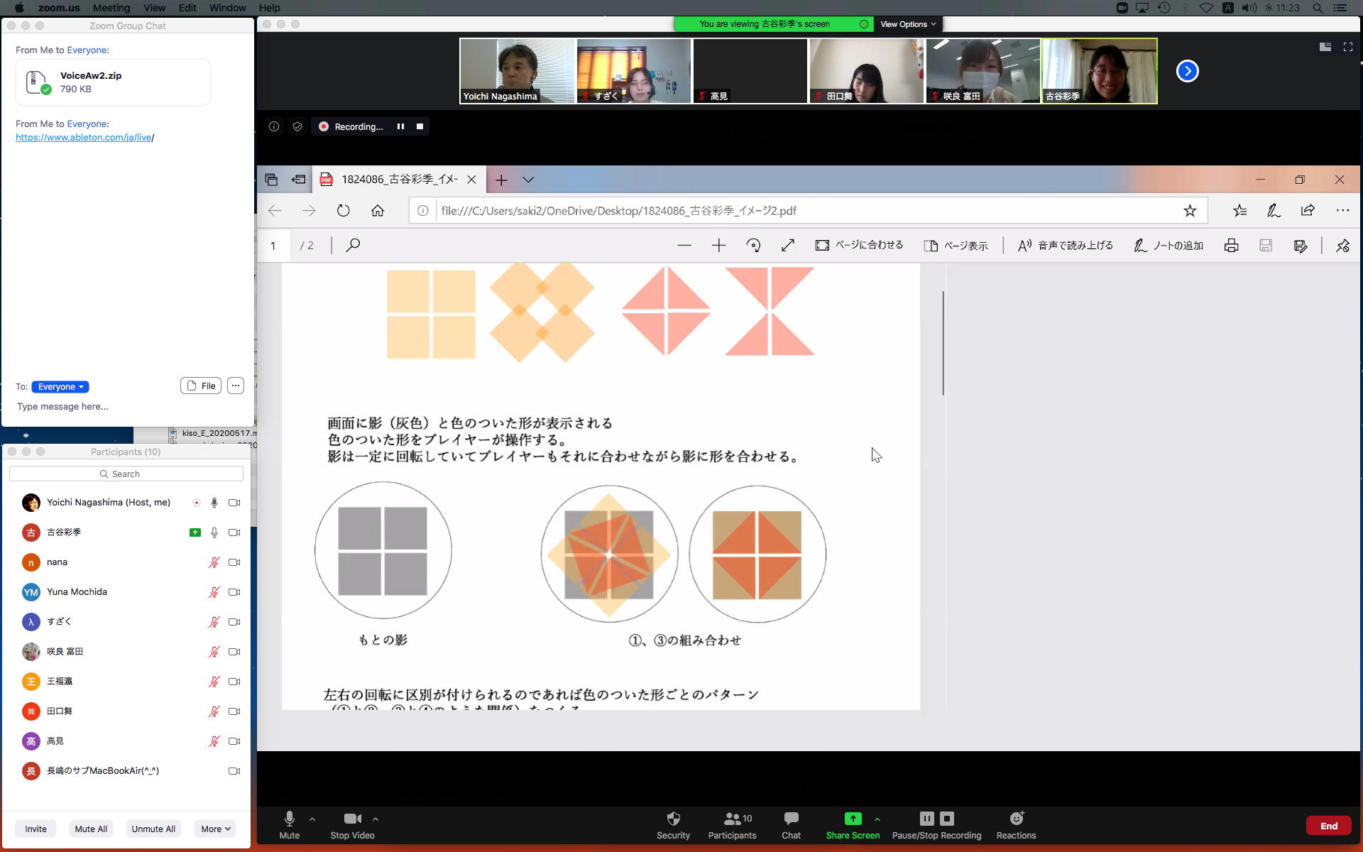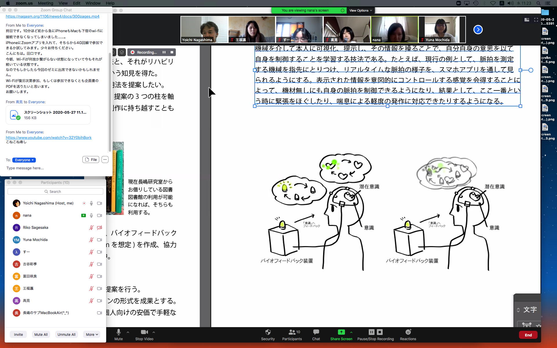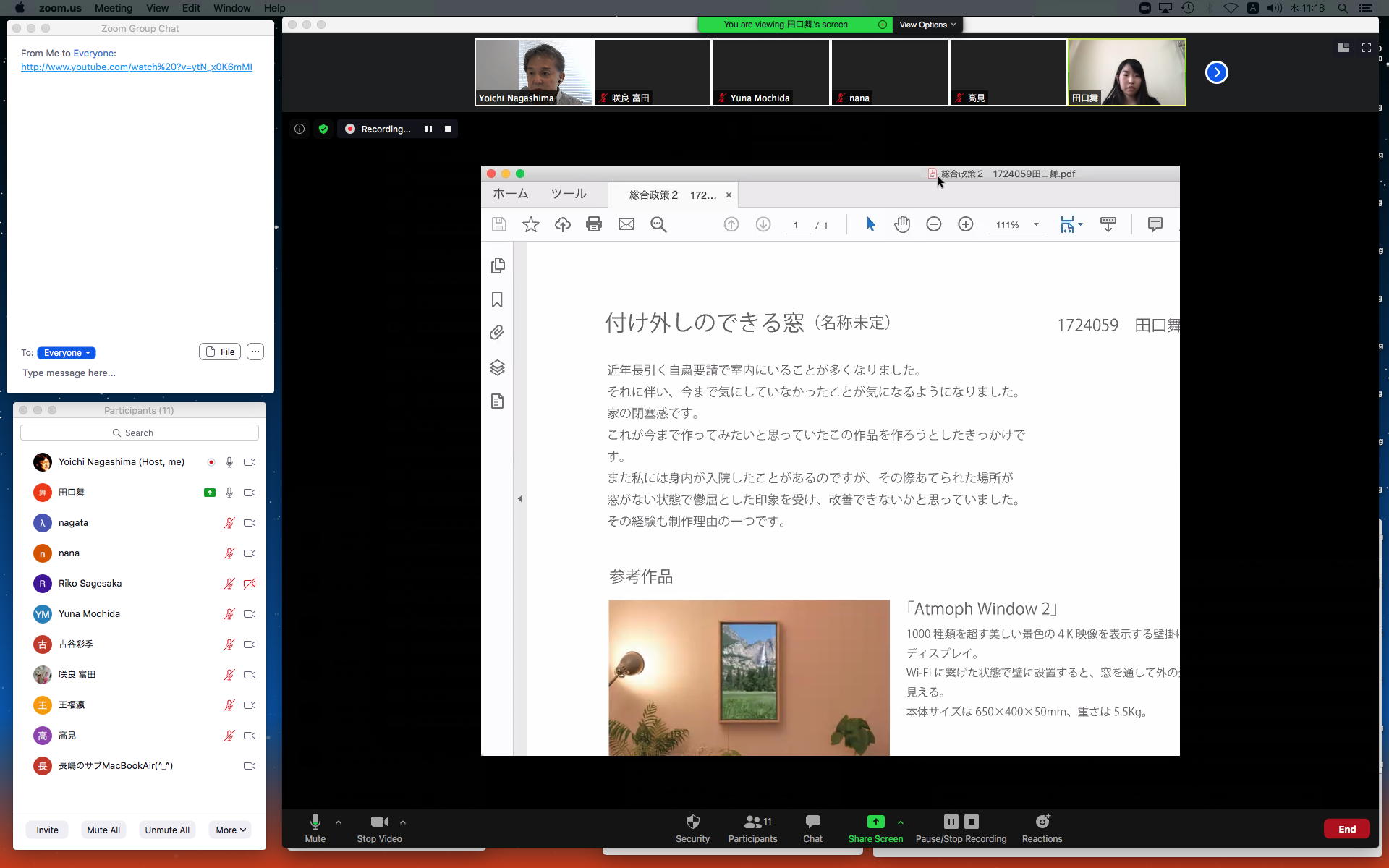 そしてここからゼミZOOM会議となり、欠席の理子ちゃんもメイルで経過報告PDFを送ってくれて、以下のように全員で有意義な情報交換ゼミを進めた。 皆んなそれぞれ、遠隔環境ながら、ちゃんとプロジェクトを進めているのはさすがだ(^_^)。 ちなみに(リンク切れするが)全60分の記録動画は これ である。