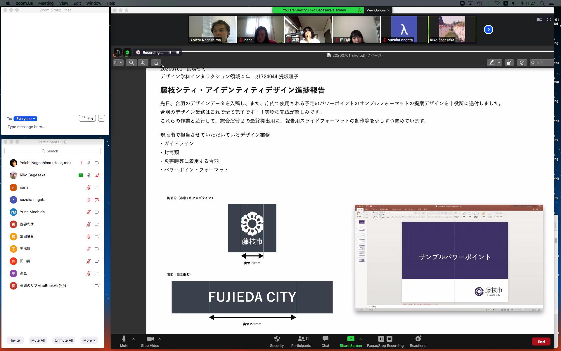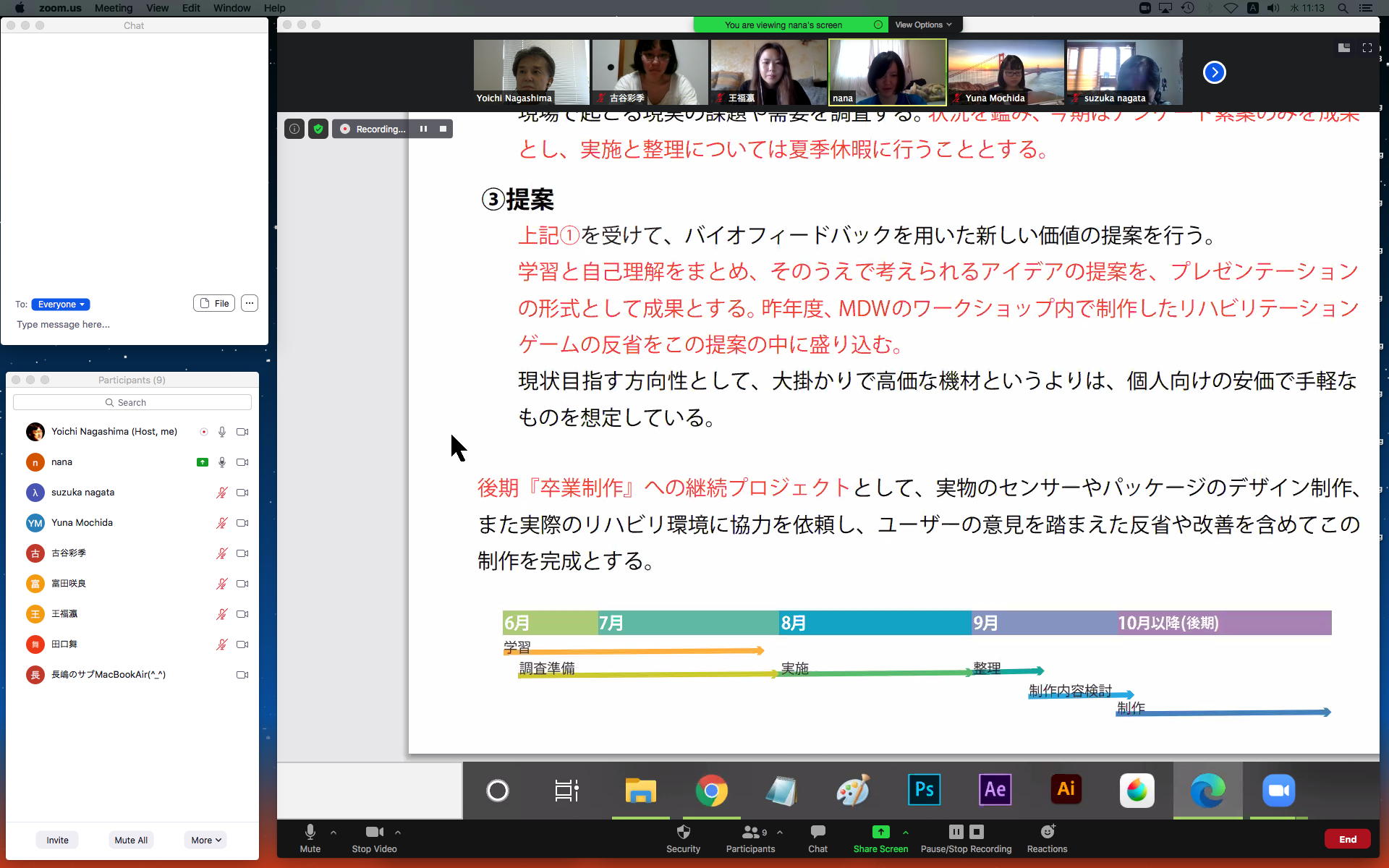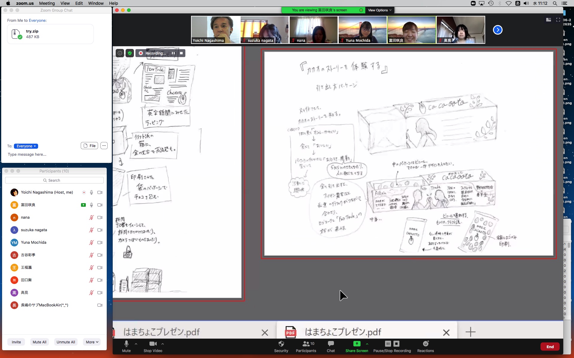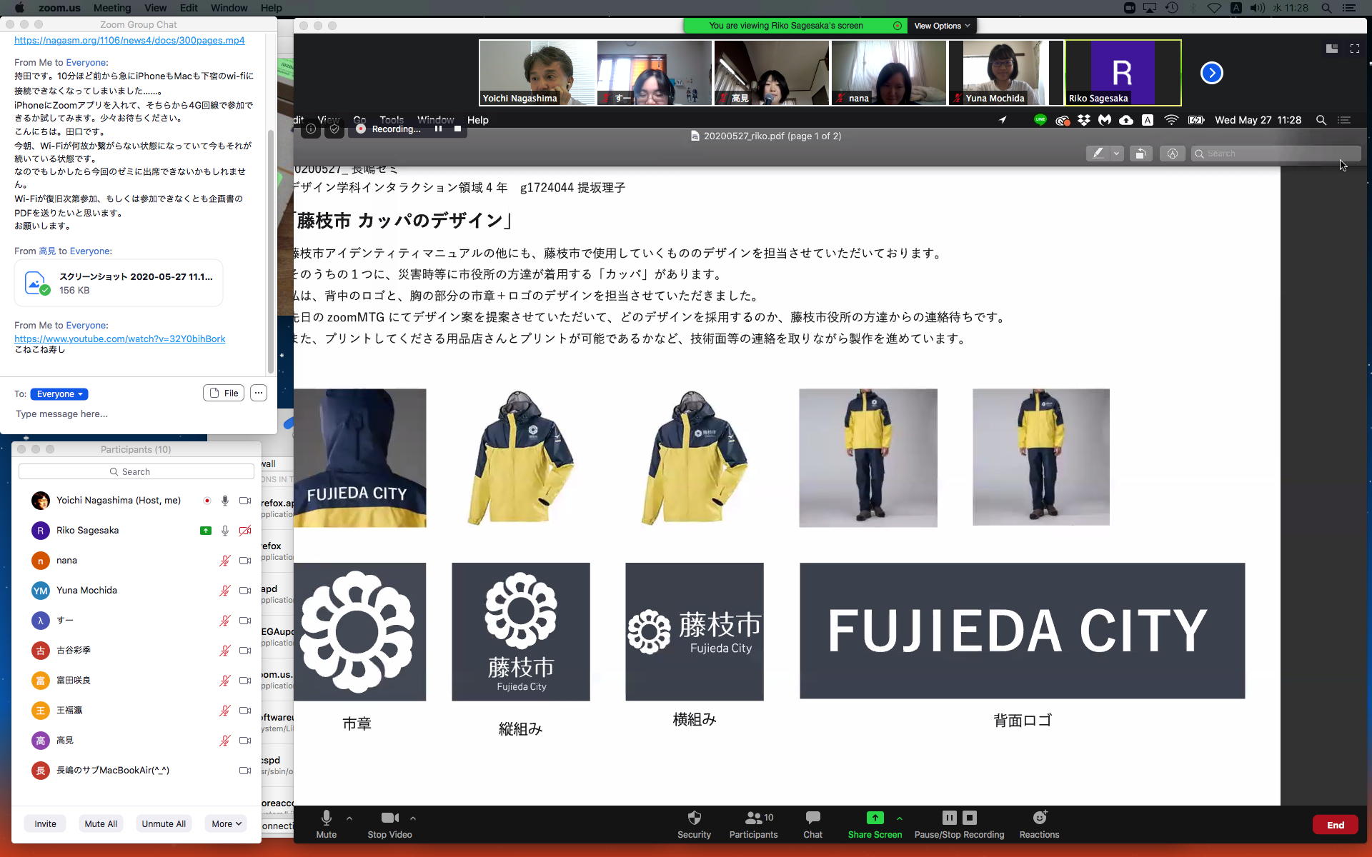 そしてここからゼミZOOM会議となり、欠席の理子ちゃんもメイルで経過報告PDFを送ってくれて、以下のように全員で有意義な情報交換ゼミを進めた。 皆んなそれぞれ、遠隔環境ながら、ちゃんとプロジェクトを進めているのはさすがだ(^_^)。 ちなみに(リンク切れするが)全60分の記録動画は これ である。