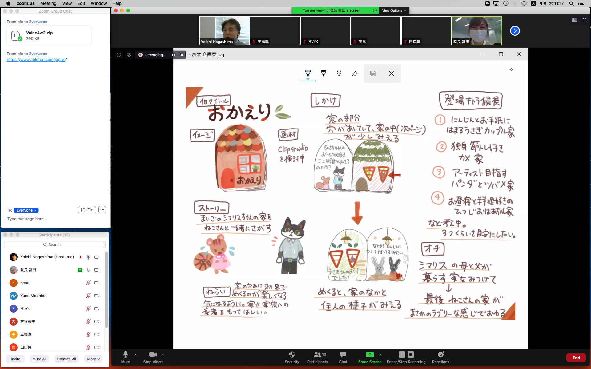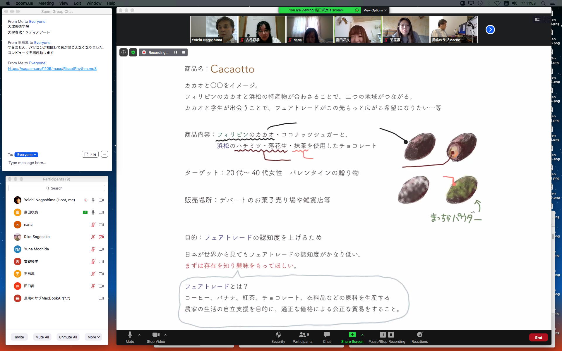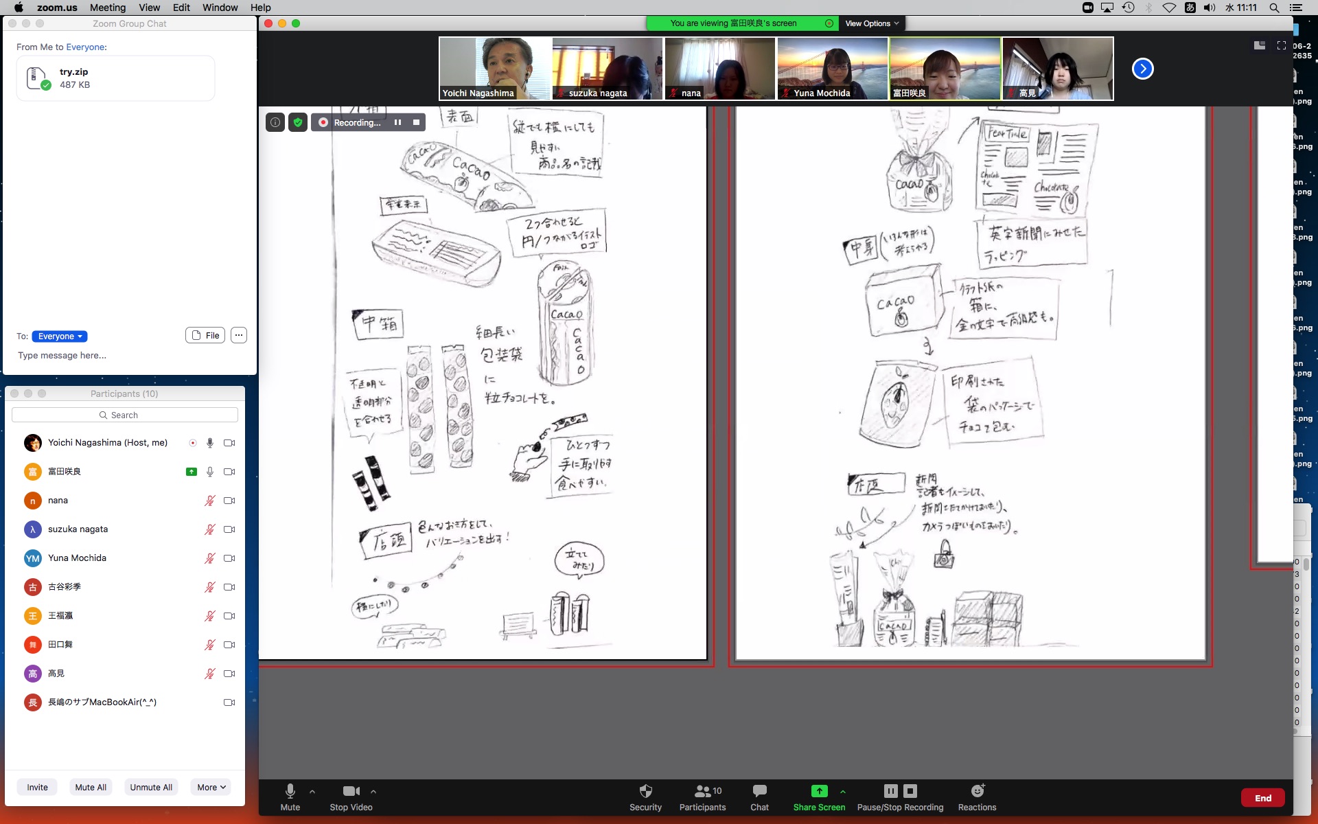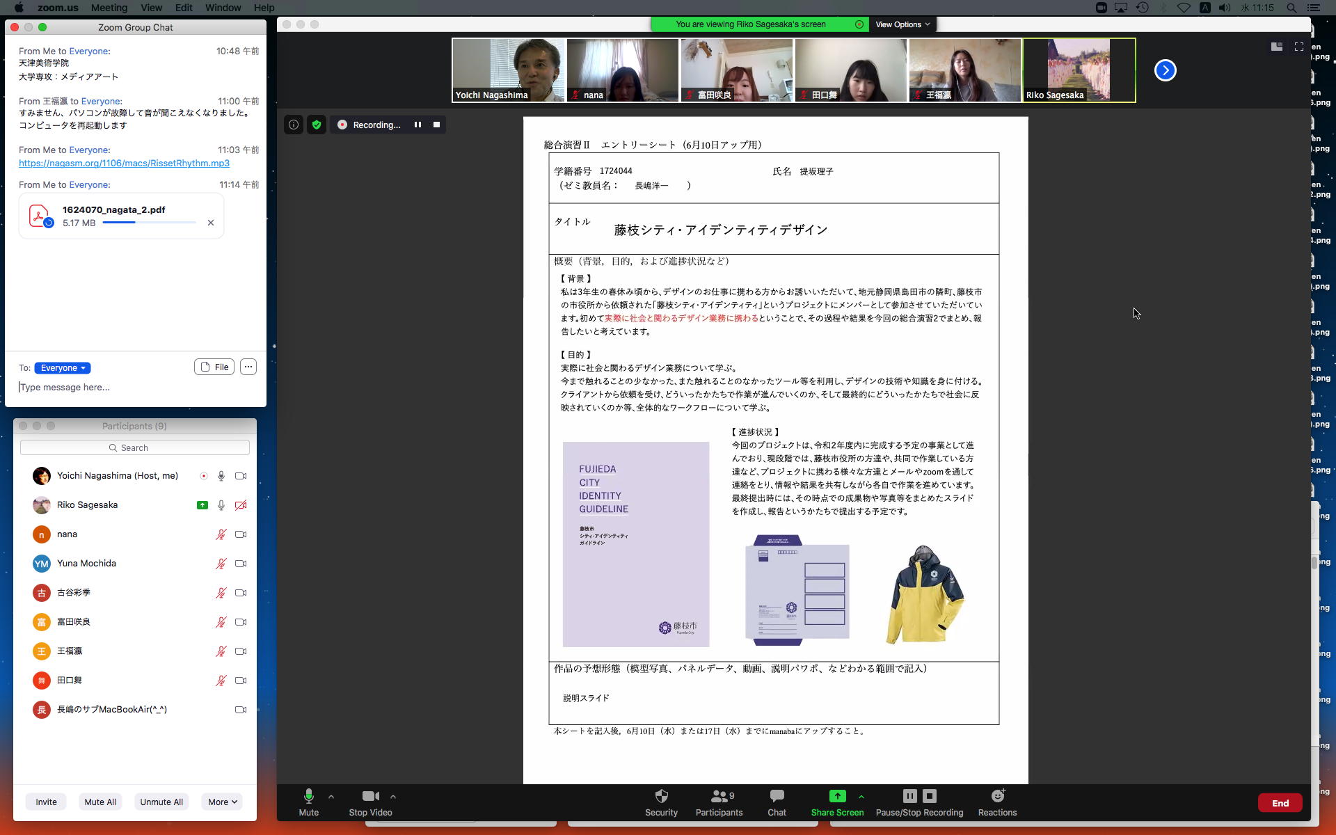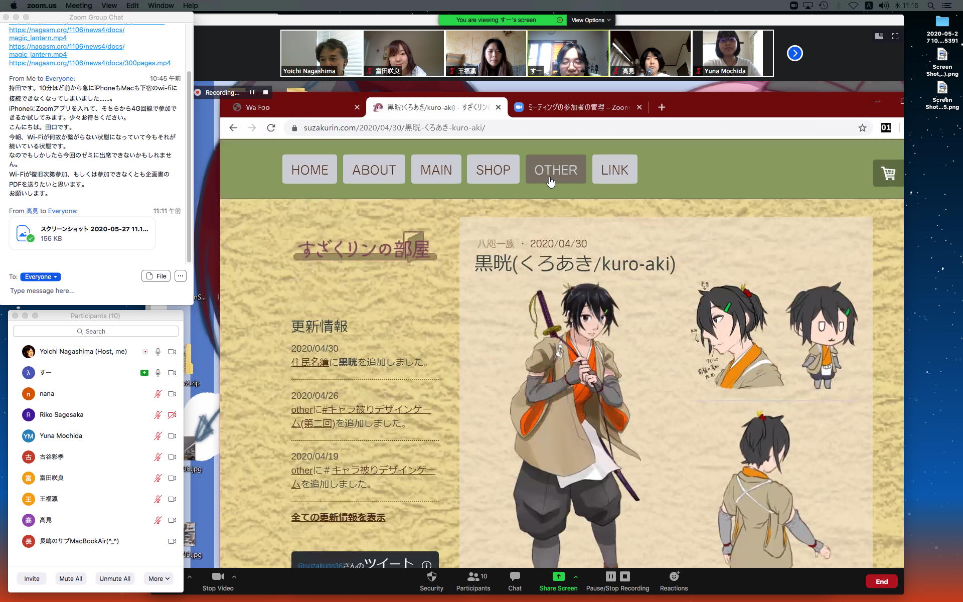 そしてここからゼミZOOM会議となり、欠席の理子ちゃんもメイルで経過報告PDFを送ってくれて、以下のように全員で有意義な情報交換ゼミを進めた。 皆んなそれぞれ、遠隔環境ながら、ちゃんとプロジェクトを進めているのはさすがだ(^_^)。 ちなみに(リンク切れするが)全60分の記録動画は これ である。
