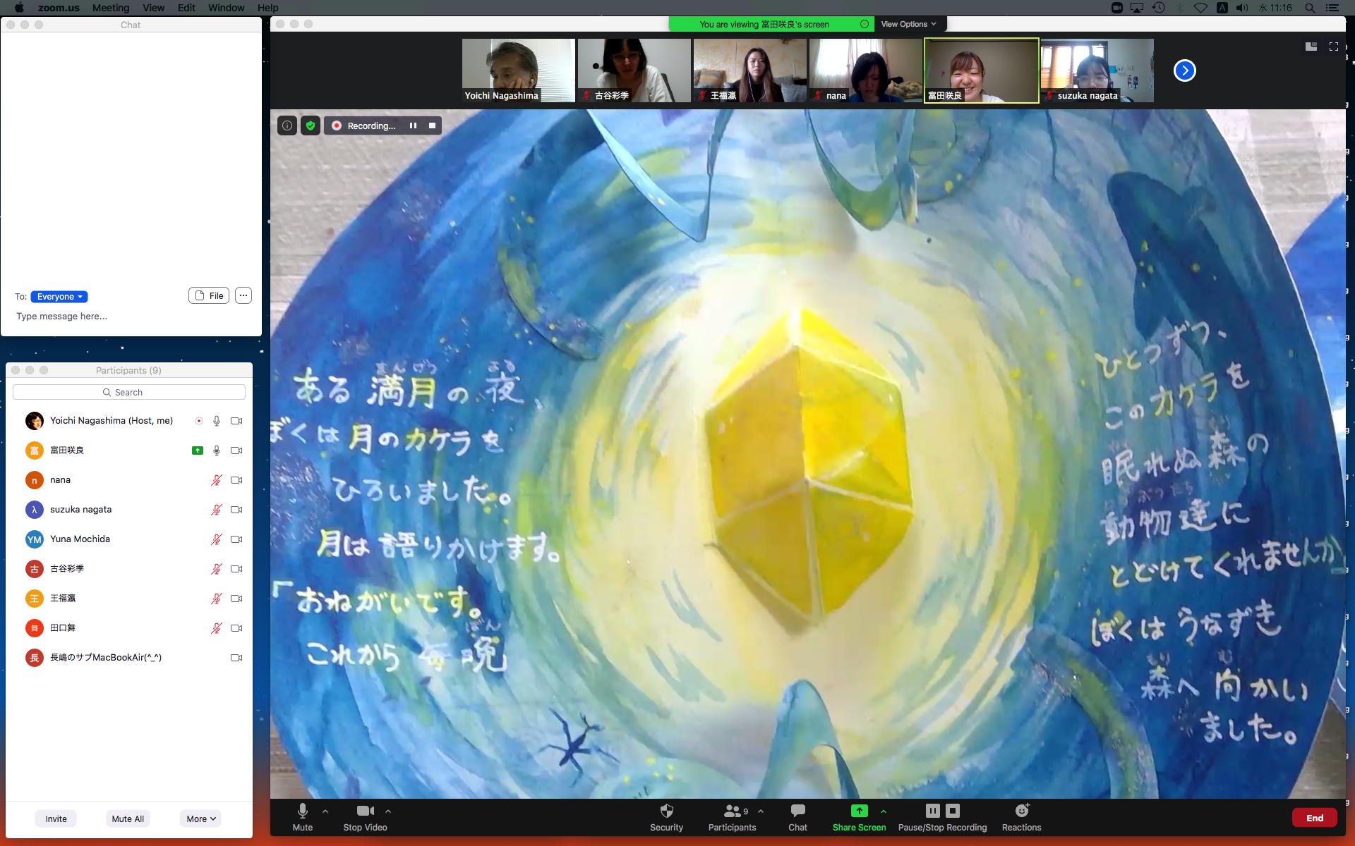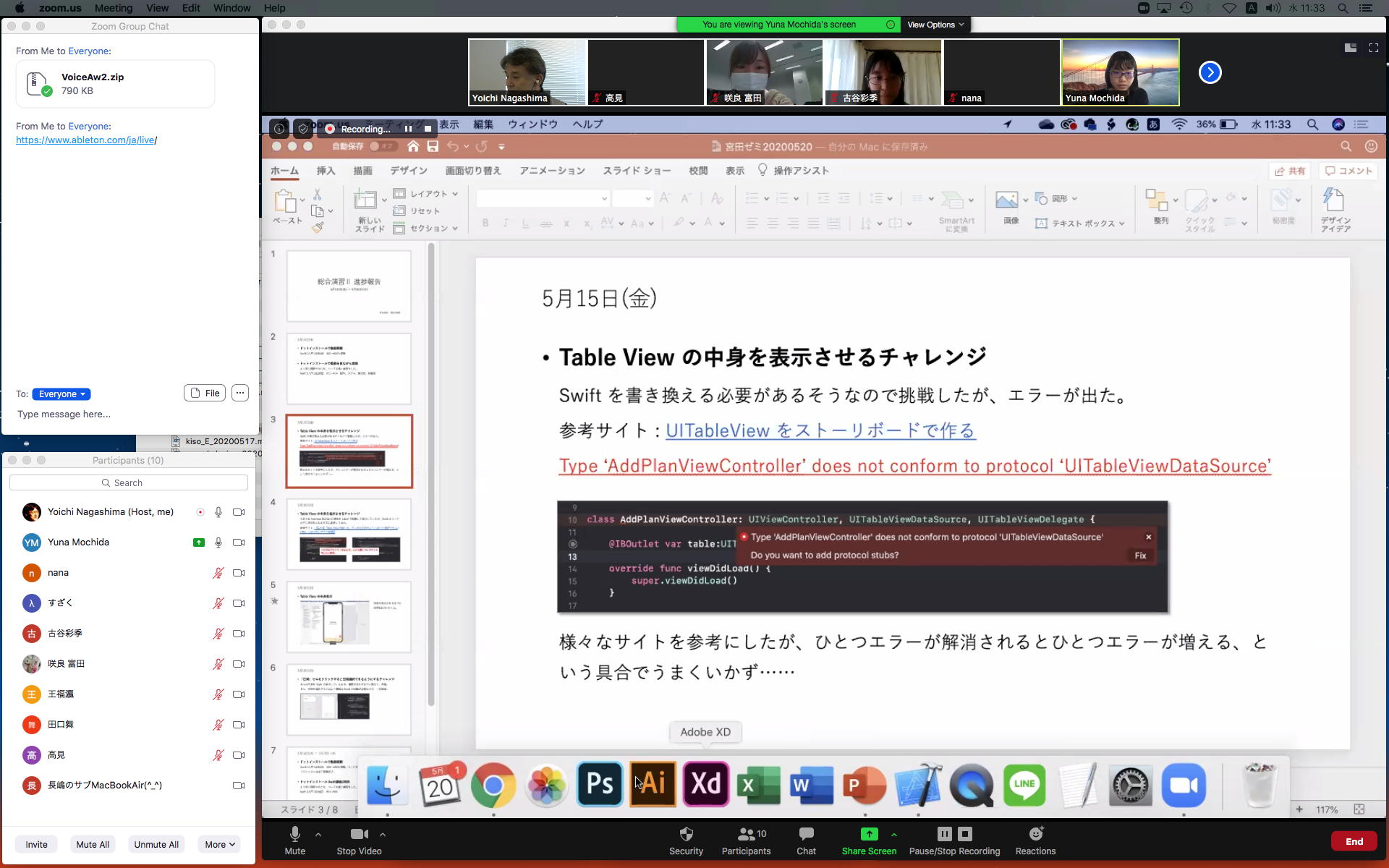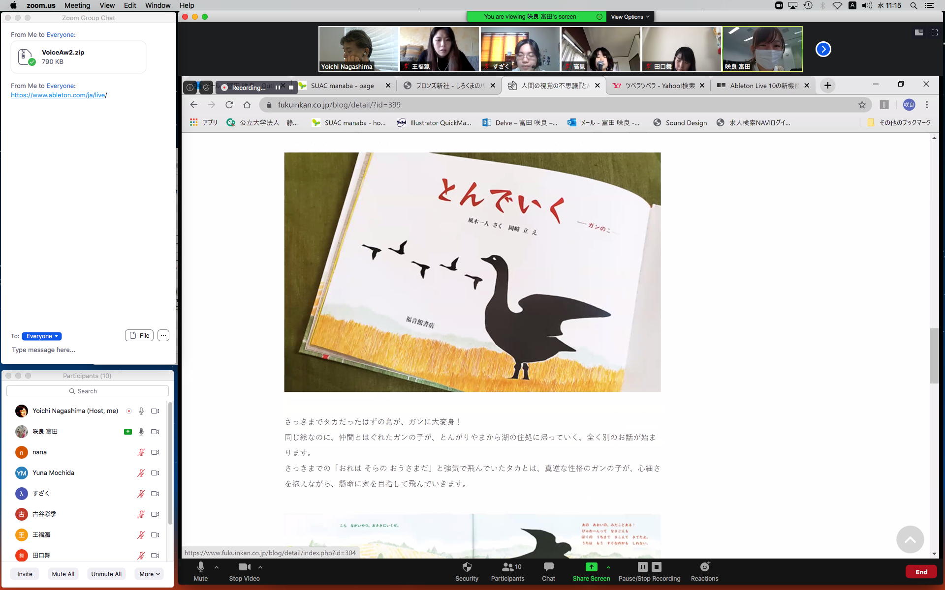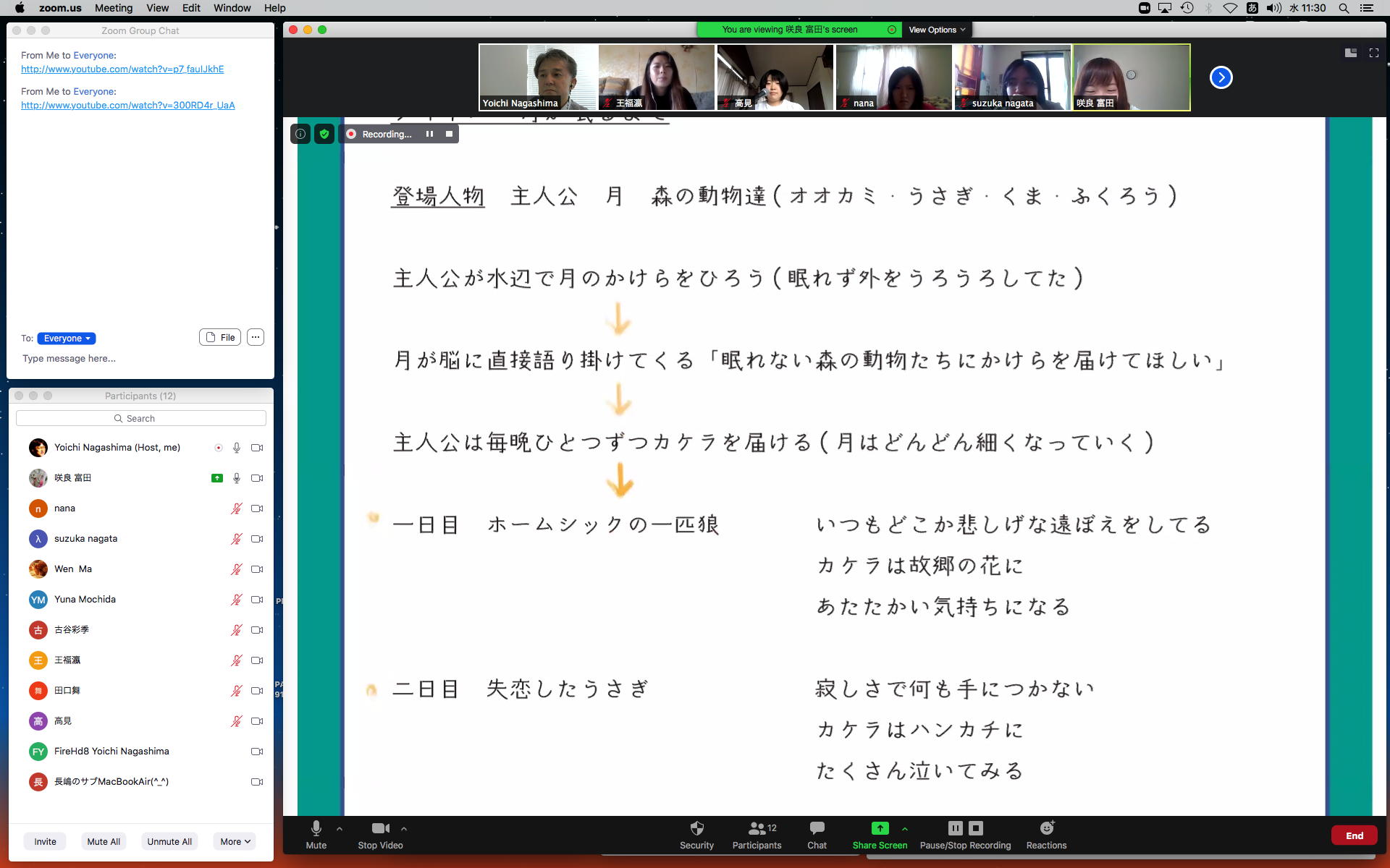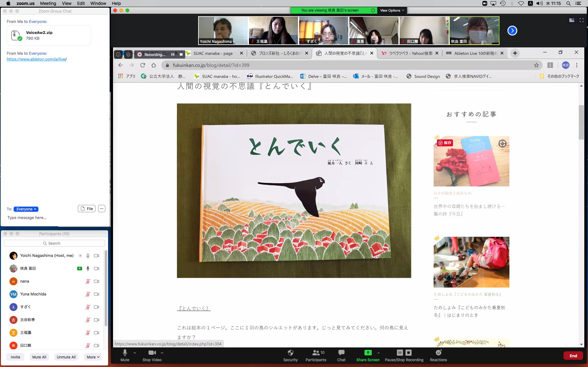 そしてここからゼミZOOM会議となり、欠席の理子ちゃんもメイルで経過報告PDFを送ってくれて、以下のように全員で有意義な情報交換ゼミを進めた。 皆んなそれぞれ、遠隔環境ながら、ちゃんとプロジェクトを進めているのはさすがだ(^_^)。 ちなみに(リンク切れするが)全60分の記録動画は これ である。