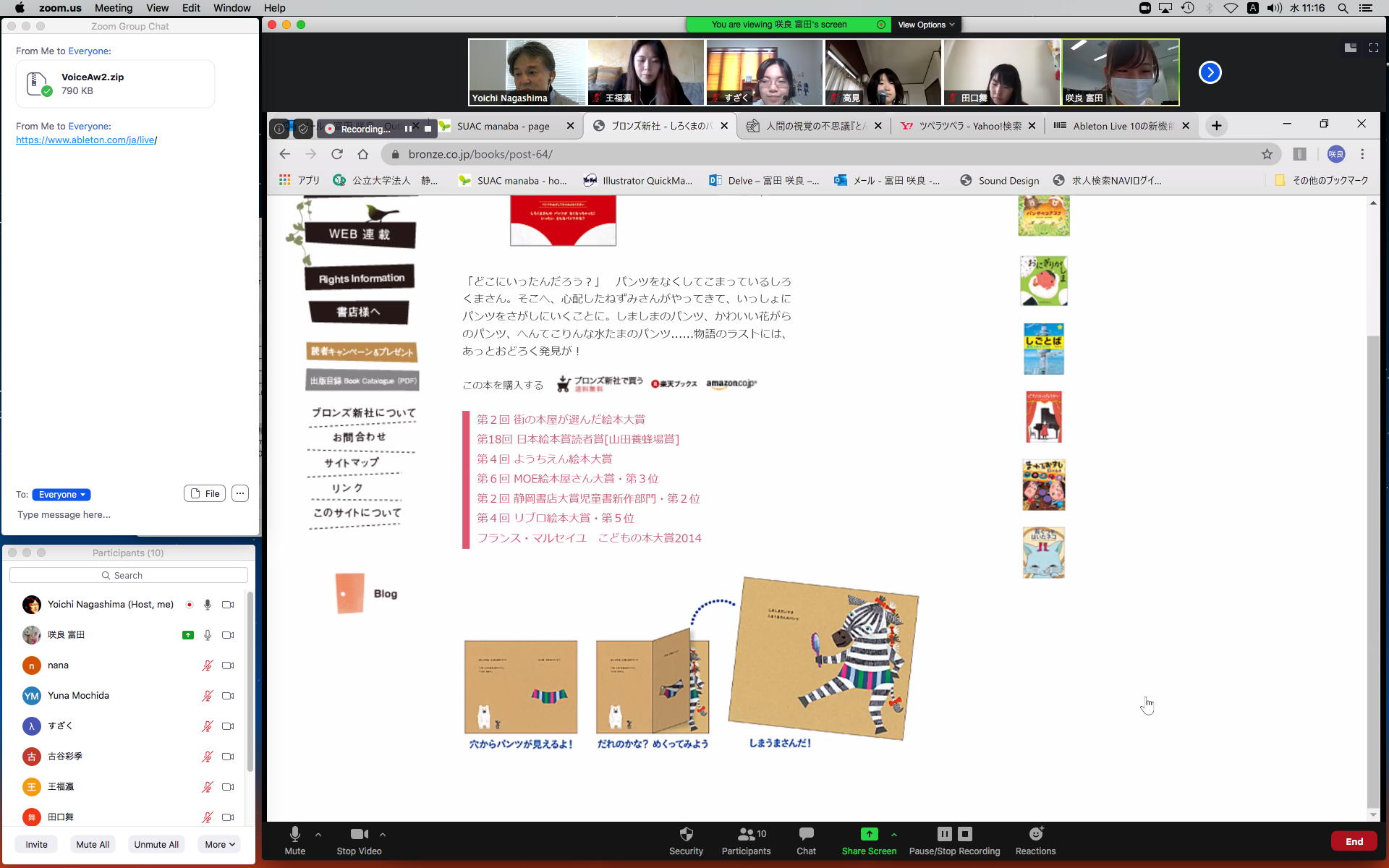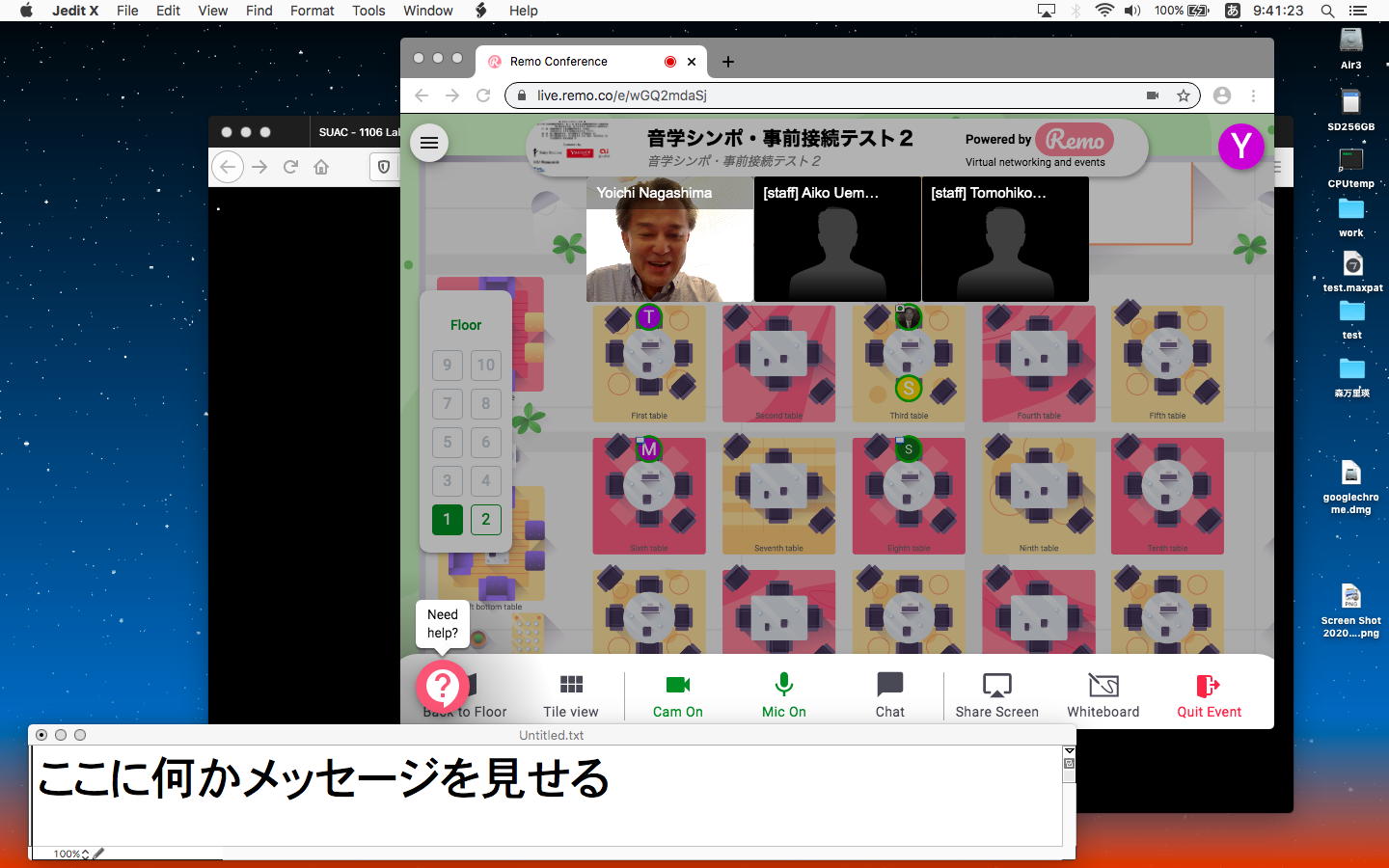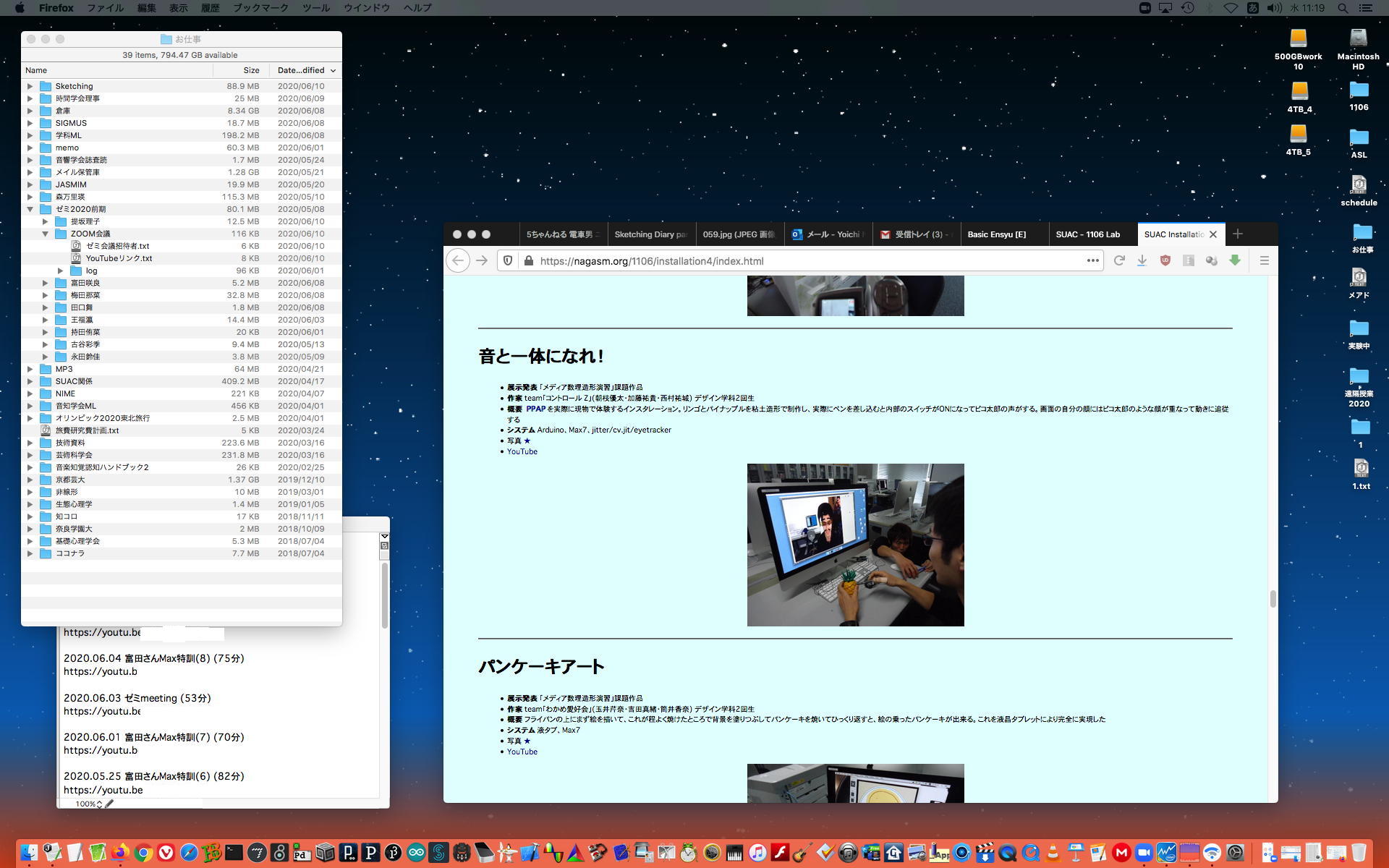 そして2限には、所用で抜けた理子ちゃん(進捗報告PDFを紹介)以外が全員集合して、ゼミZOOM会議となった。 僕は直前にZOOMをインストールしたfireHD10とiPadでもZOOMをやってみたが、どうタブレットは非力なせいか、画像がカクカクと止まっていてスグに抜けることになった。 メンバーはそれぞれの進捗を以下のように報告して、なかなか実り多いゼミZOOMミーティングとなったが、その合間にも刻々と「MaxのSUACライセンスを求める」という学生からのメイルが届いた。