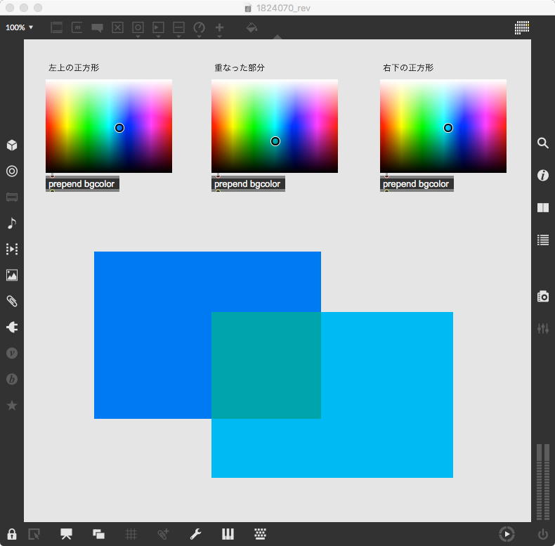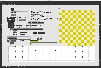 上のパッチは昨日の夕方にやっていたもので、「透視視」を元にした永井さんのパッチを改良したものである。 ここでは「swatch」を使ってシンプルに作ってみたが、これでも十分に色彩感覚のトレーニングに使えそうだ。